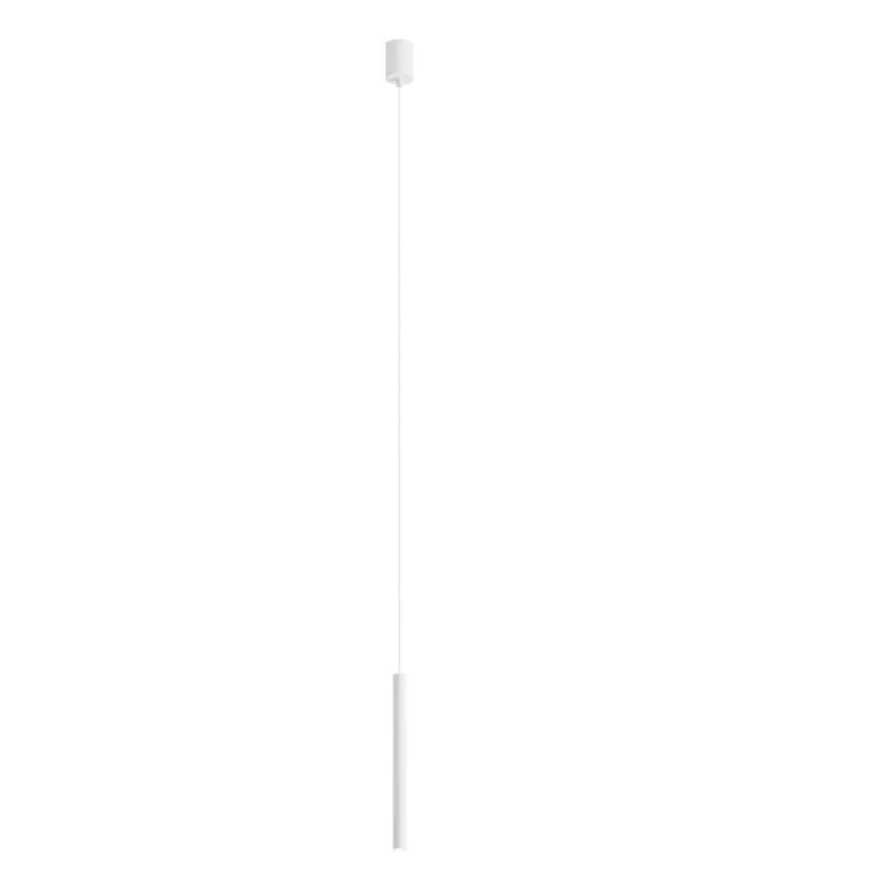 Lampada LED a sospensione con struttura in estruso di alluminio bianco opaco. Diffusore in policarbonato trasparente.