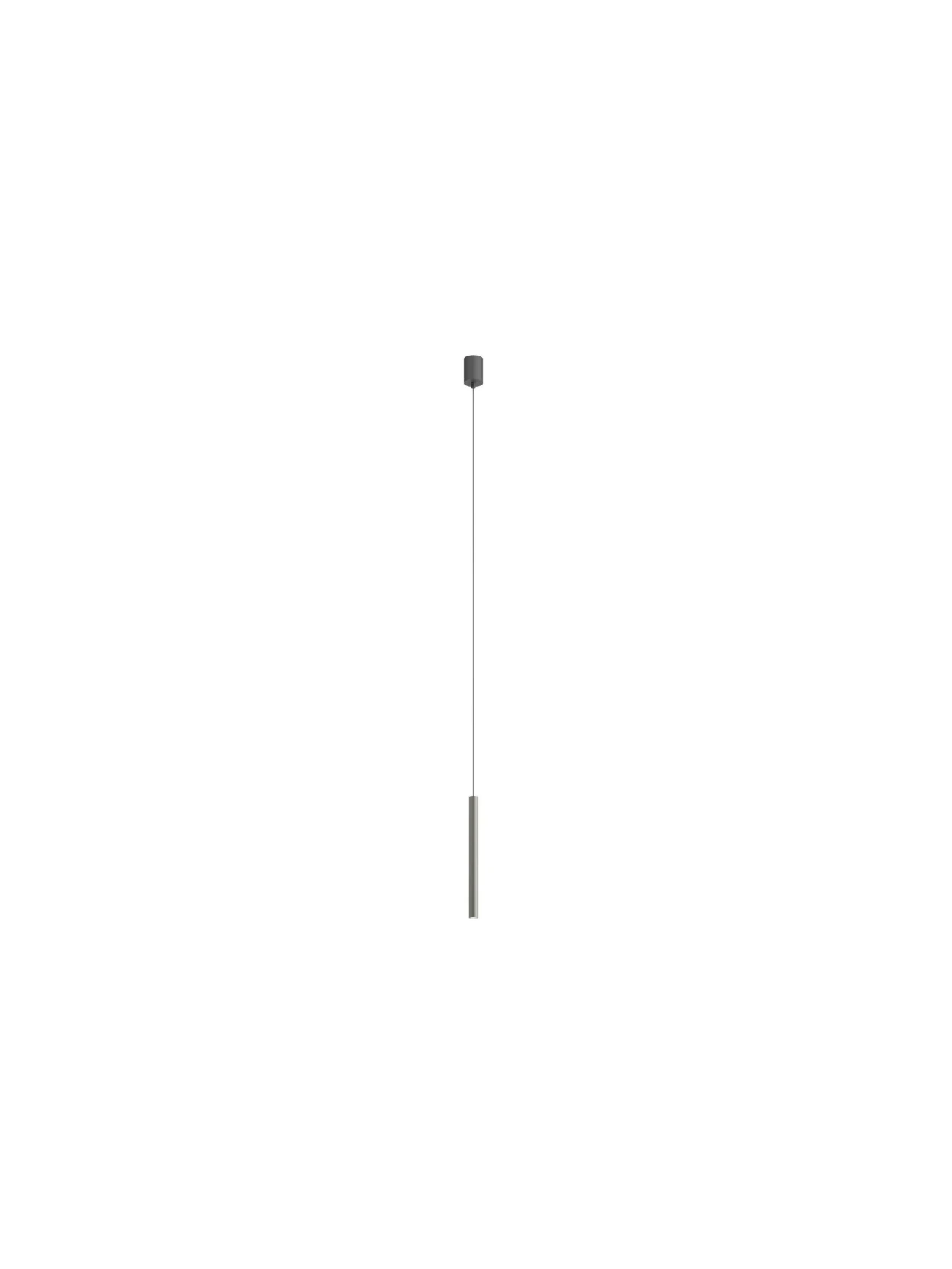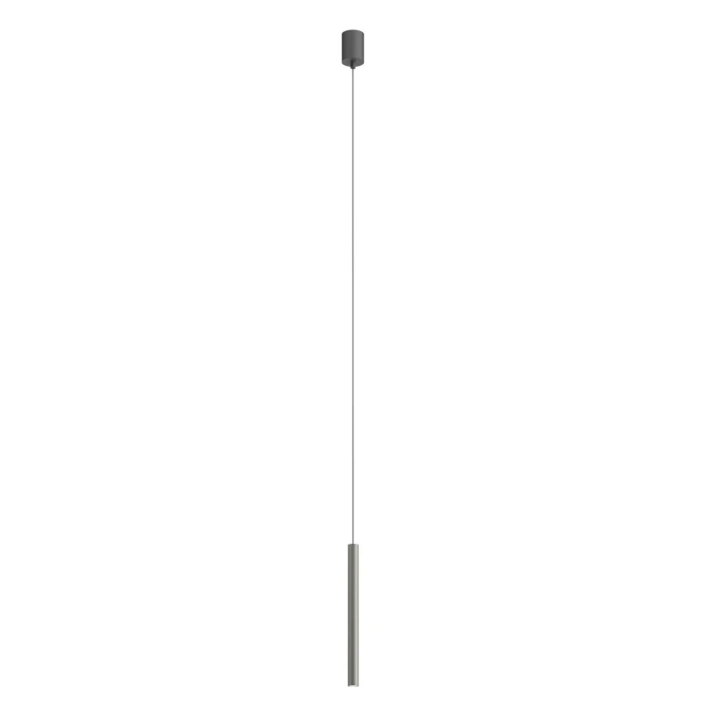 Lampada LED a sospensione con struttura in estruso di alluminio foggy nichel. Diffusore in policarbonato trasparente.