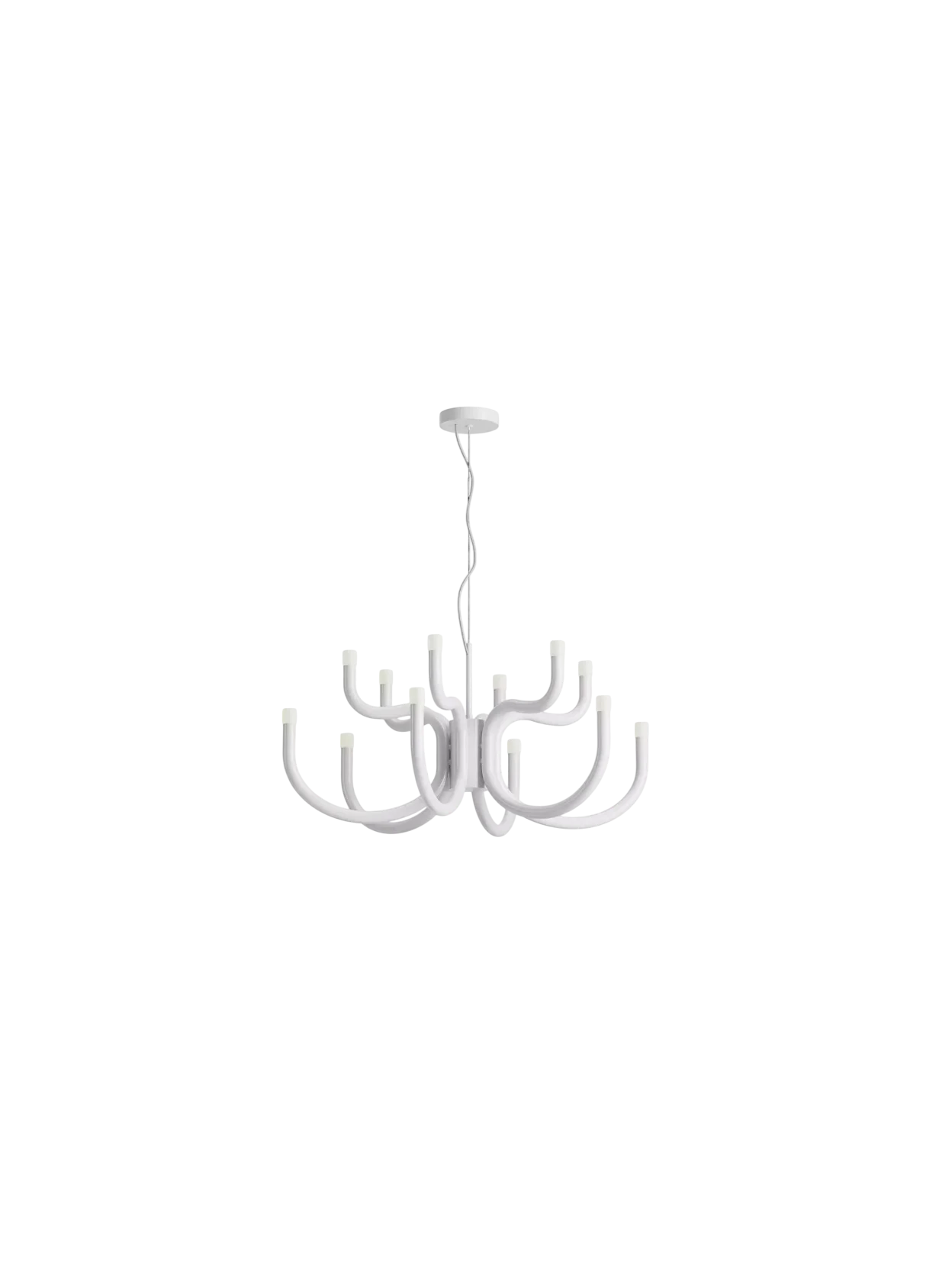 Luxor di Redo Group è un'elegante lampada a sospensione; una fusione di design contemporaneo e tecnologia all'avanguardia. La struttura, realizzata in metallo e alluminio verniciato bianco lucido, presenta linee fluide e sinuose che richiamano la forma di un classico candelabro reinterpretato in chiave minimalista. I diffusori in acrilico satinato garantiscono una distribuzione omogenea della luce, offrendo un'illuminazione calda e accogliente (3000K). Dotato di LED SMD ad alta efficienza, è disponibile in tre varianti di potenza per adattarsi a spazi di diverse dimensioni, tutte dimmerabili tramite sistema TRIAC per il massimo controllo della luminosità. Con un CRI elevato (93), assicura una resa cromatica eccellente. Questa lampada è la scelta perfetta per illuminare ambienti moderni con stile.