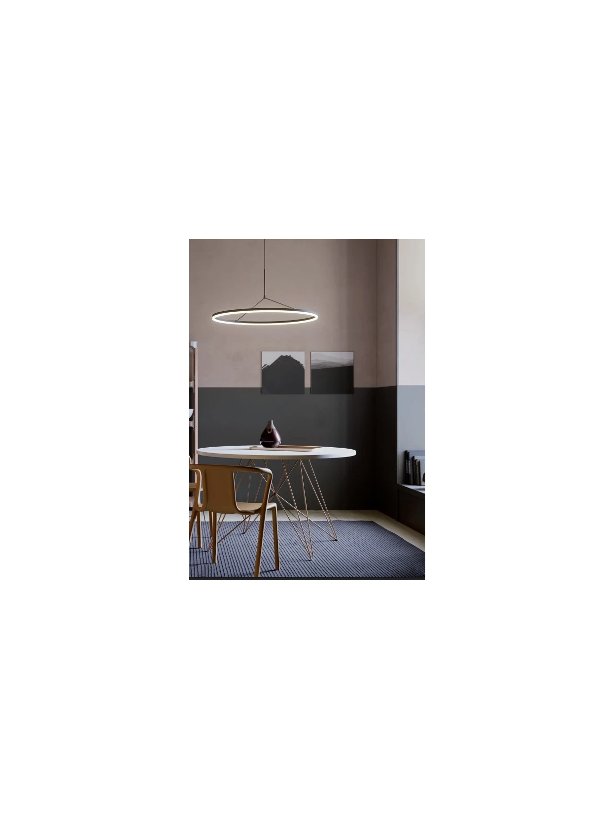 Orbit di Redo Group è una lampada a sospensione LED  dal design essenziale e moderno, con struttura in alluminio e metallo verniciata bianco opaco e diffusore in acrilico satinato. Disponibile in diverse misure, è perfetta per ambienti interni grazie alla sua luce uniforme e intensa. Equipaggiata con LED SMD offre una resa luminosa reale a temperatura colore 3000K (luce calda). Dimmerabile con tecnologia TRIAC, ha un’elevata resa cromatica (CRI 90) ed è ideale per soggiorni, sale riunioni o spazi commerciali dallo stile pulito e sofisticato.