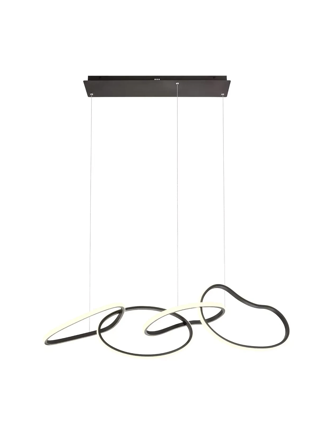 Lampada a sosopensione dotata di tecnologia LED SMD dimmerabile a 3 step e temperatura colore selezionabile. Realizzata in metallo e alluminio con finitura nero opaco.