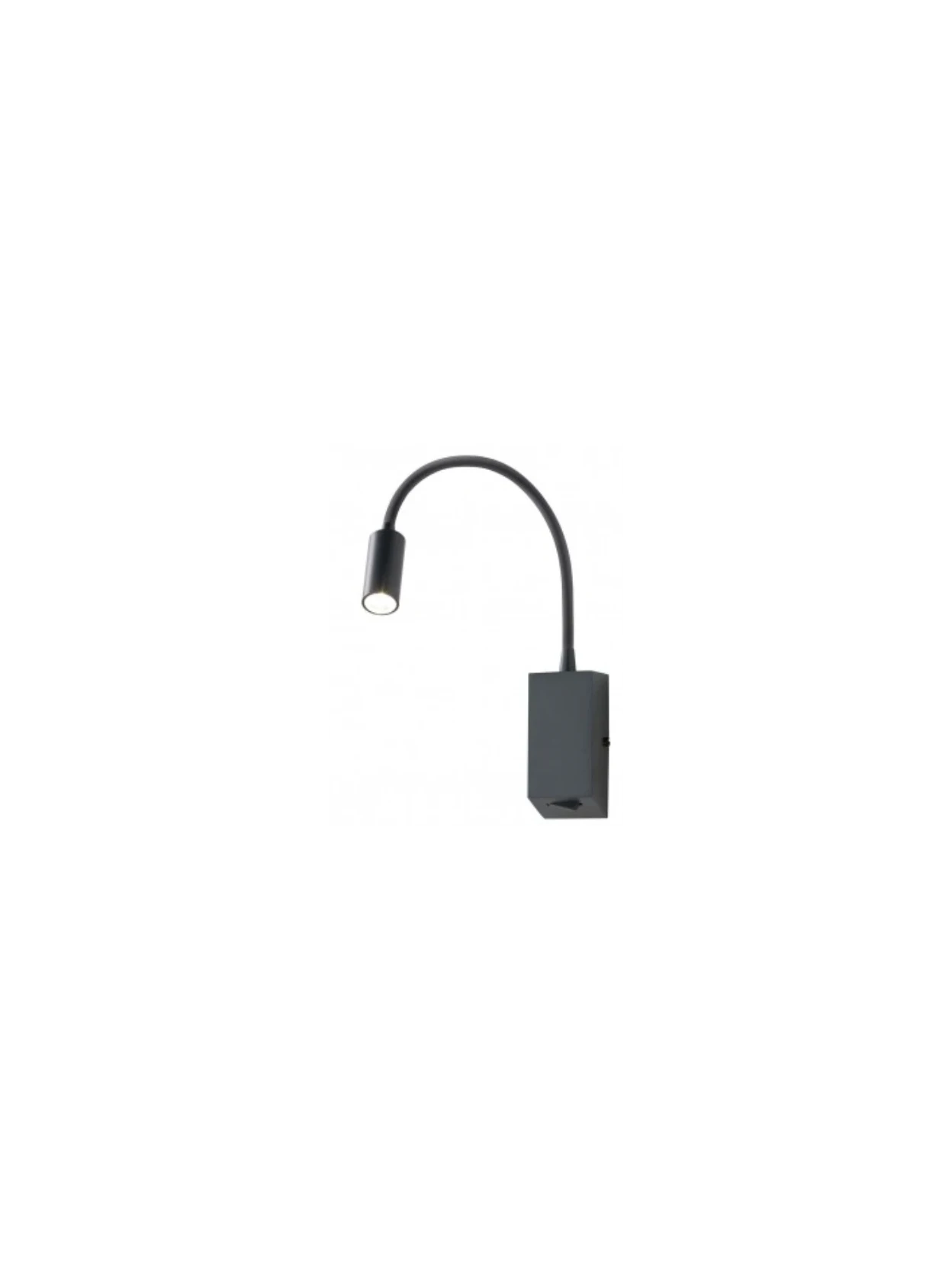 Lampada da parete LED con braccio flessibile realizzata in metallo nero opaco.