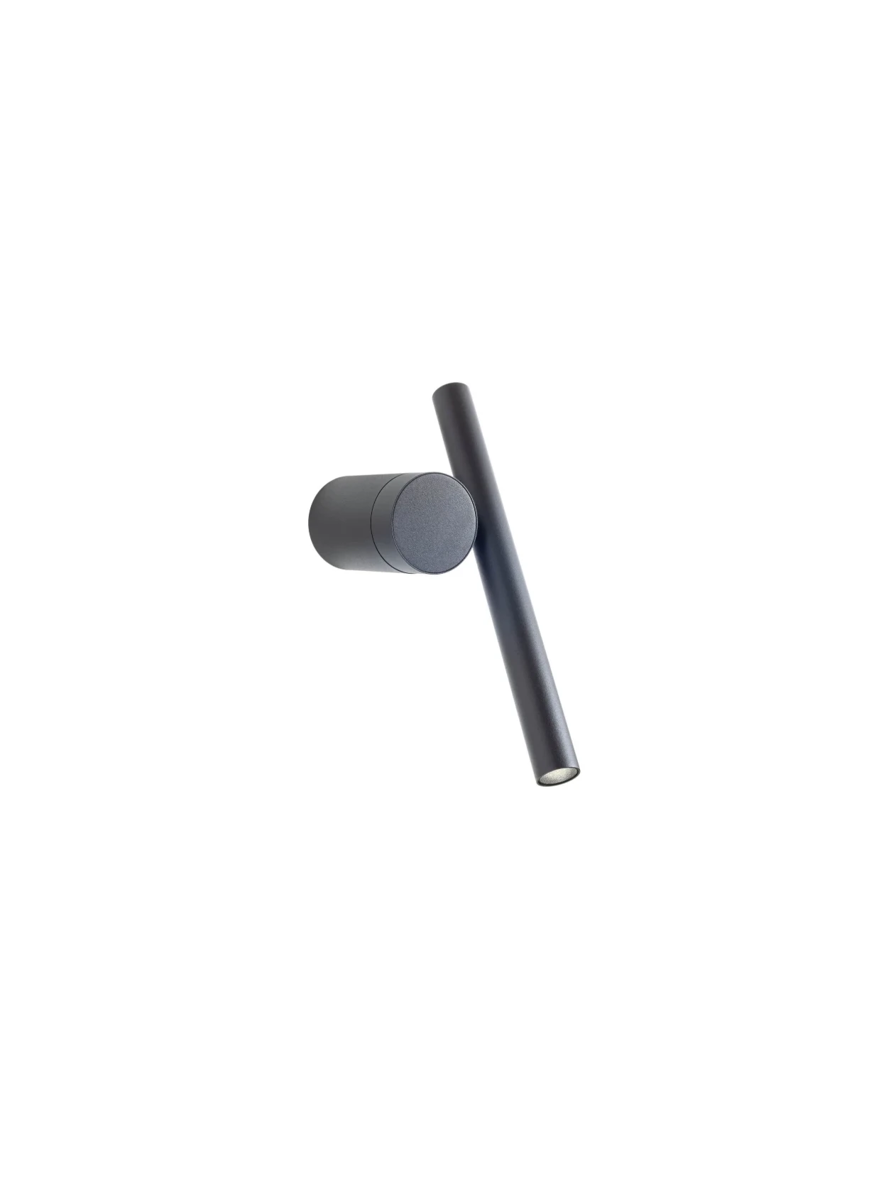 Lampada da parete orientabile dotata di LED COB. La struttura è in alluminio estruso e metallo verniciata nero opaco e diffusore in policarbonato trasparente.