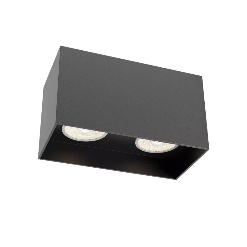 Corinth di Redo Group è una lampada da soffitto quadrata che unisce eleganza minimal e funzionalità. Struttura in metallo e alluminio con finitura opaca (bianco, oro o nero) e interno nero a contrasto. Ideale per ambienti moderni. Usa due lampadine GU10 max 7W, 220–240V, IP20, classe I.