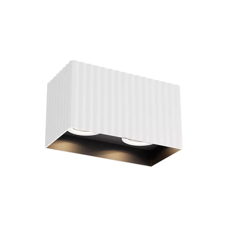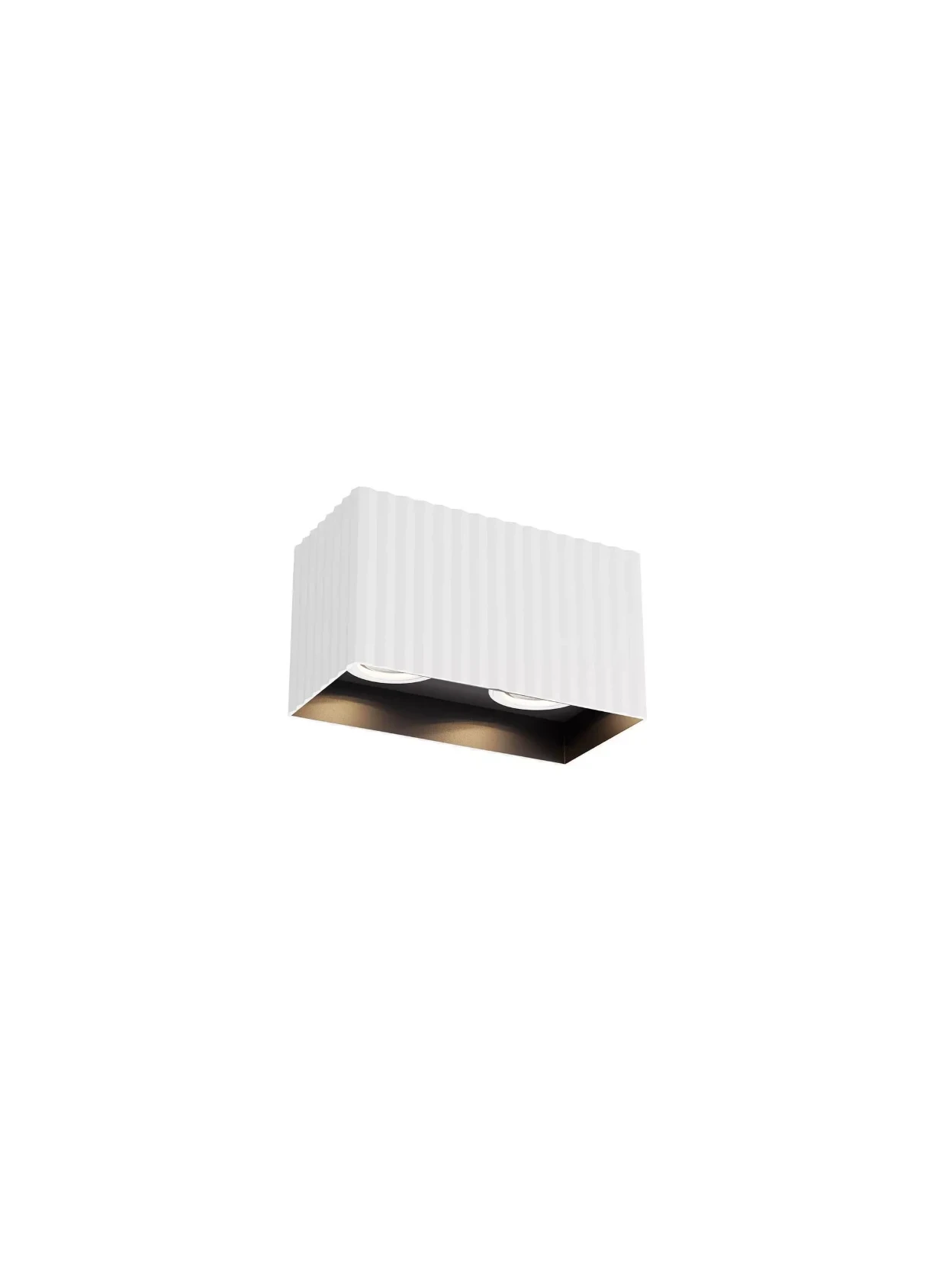 Delphi di Redo Group è una lampada da soffitto quadrata che unisce eleganza minimal e funzionalità. Struttura in metallo e alluminio con finitura opaca (bianco, oro o nero) e interno nero a contrasto. Ideale per ambienti moderni. Usa due lampadine GU10 max 7W, 220–240V, IP20, classe I.