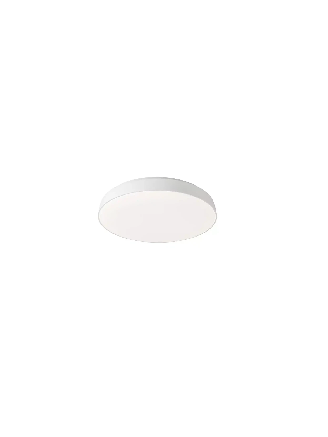 Lampada da soffitto LED con struttura in metallo verniciato in finitura bianco opaco e diffusore in PMMA bianco opale.