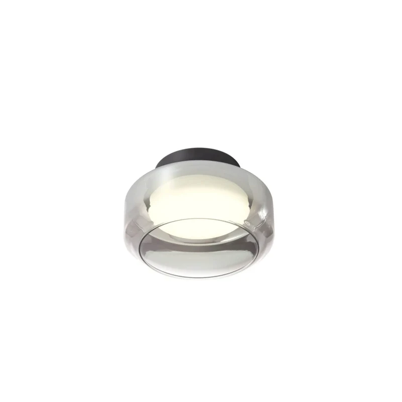 Solera è una plafoniera LED da interno con struttura in metallo e alluminio nero opaco e doppi diffusori in vetro soffiato, fumé all’esterno e bianco opale all’interno. Disponibile nelle versioni da 18W, 24W e 36W, permette di selezionare la temperatura colore tra 3000K e 4000K, offrendo CRI 94 e luce uniforme, elegante e moderna.