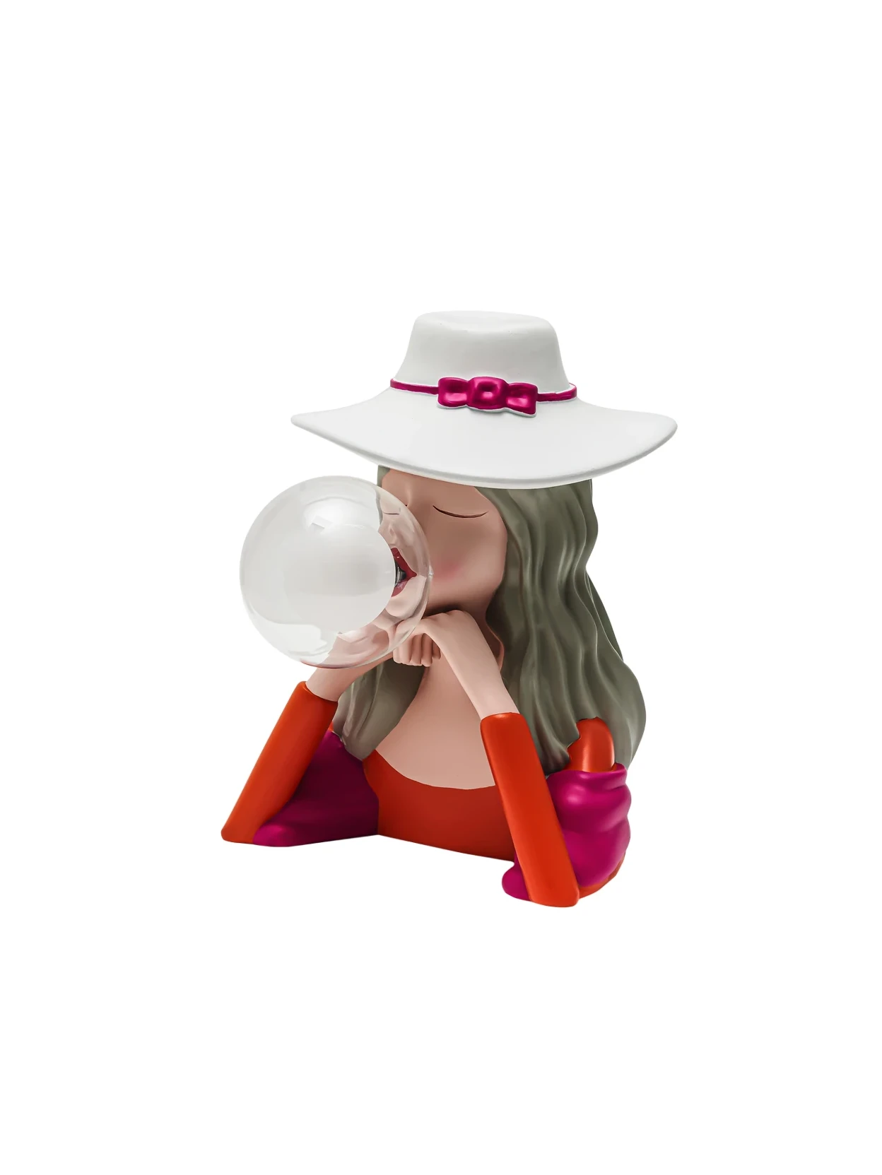 Lampada da tavolo Jessie della collezione Majorette di Henriette. Realizzata in resina dipinta a mano, multicolor. Elegante e originale, con design unico raffigurante una signorina con sfera-lampadina.