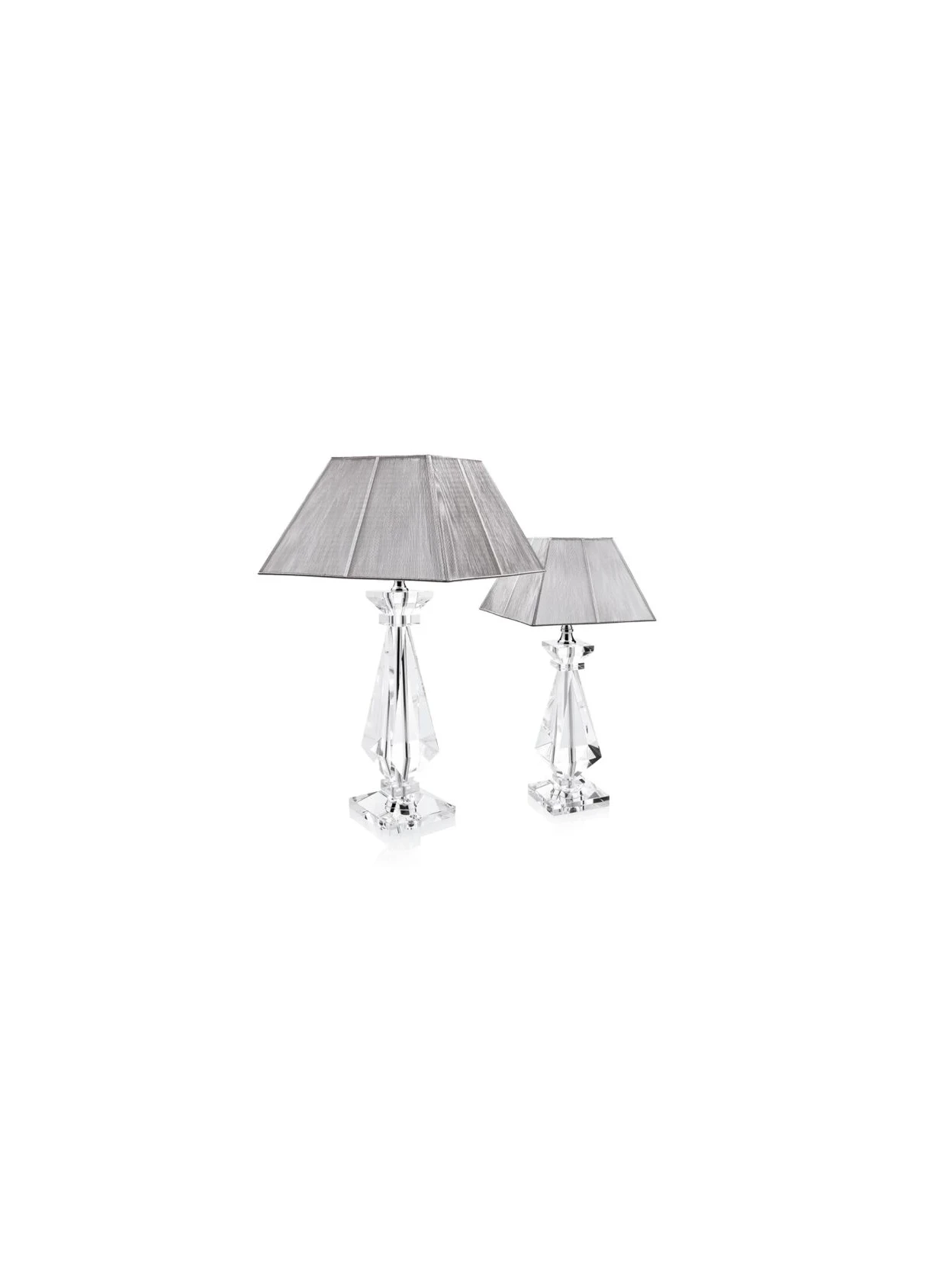Eleganza e design si incontrano nella lampada da tavolo Aquilone firmata Ottaviani. Con la sua base in cristallo trasparente e il paralume in raffinato tessuto grigio, dona luce e stile a qualsiasi ambiente, trasformando ogni spazio in un angolo di pura classe.