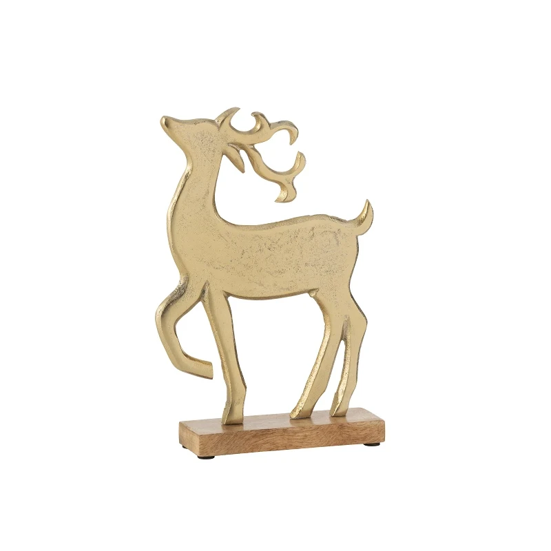 J-Line - Decorazione Renna + Piede - Legno Oro