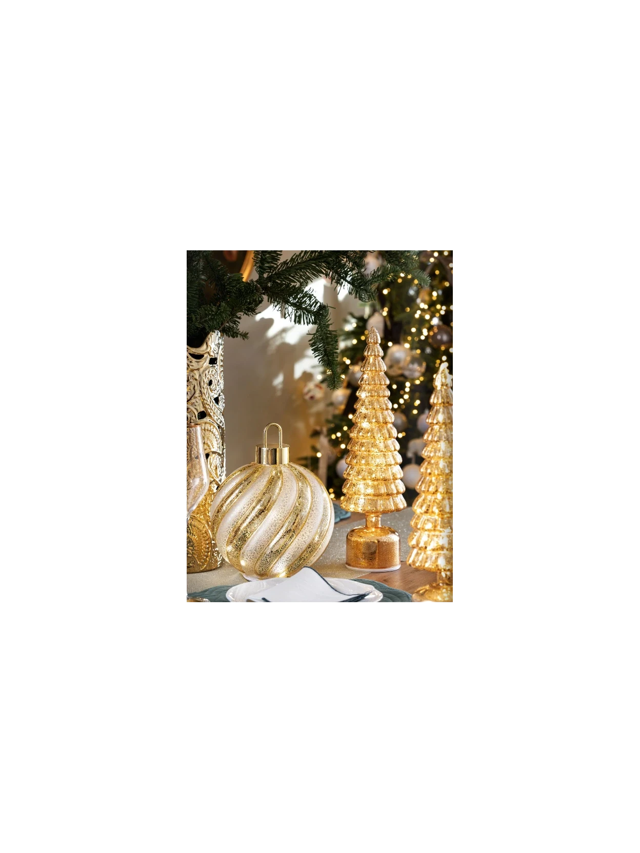 Scopri la sfera rotante di Henriette in elegante colore oro, con luci integrate e movimento rotatorio. Disponibile in due dimensioni: Ø 14,5 x h 20 cm e Ø 18,5 x h 24 cm, perfetta per decorare tavoli, mensole e angoli speciali durante le feste.