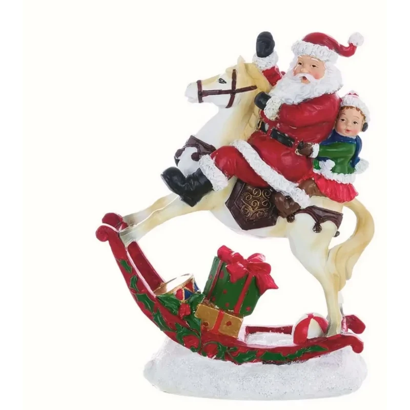 La decorazione Babbo Natale con Cavallo della collezione La Fiaba dello Zar di Blanc MariClò è un pezzo unico e raffinato che evoca la magia del Natale. Raffigura Babbo Natale con un bambino in groppa a un delicato cavallo a dondolo, creando un'atmosfera dolce e giocosa. Ideale per decorare un camino, una mensola del camino o qualsiasi angolo della casa, dona spirito natalizio e fascino elegante alle vostre decorazioni natalizie.