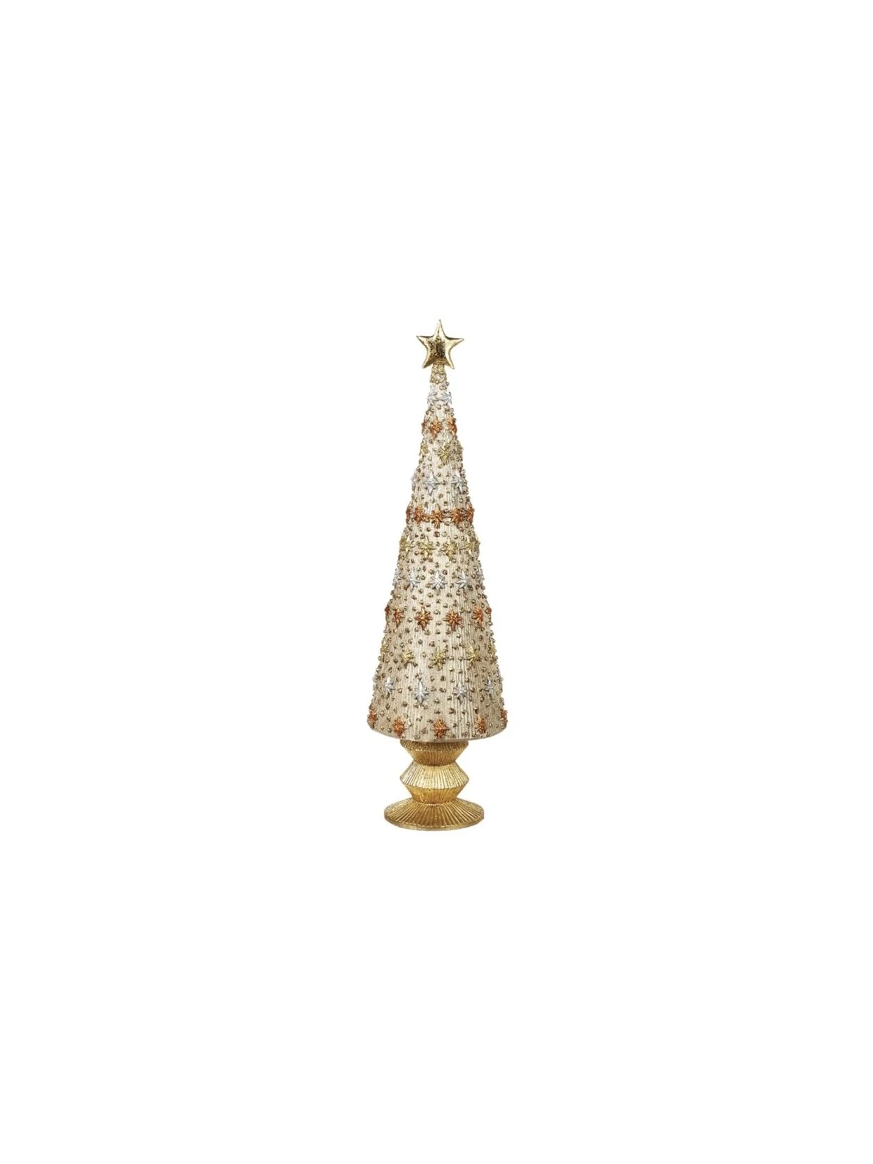 Albero di Natale dorato con stelle tricolore H 45 cm di Henriette. Una decorazione elegante e luminosa che dona un tocco festoso e raffinato ai tuoi ambienti natalizi.