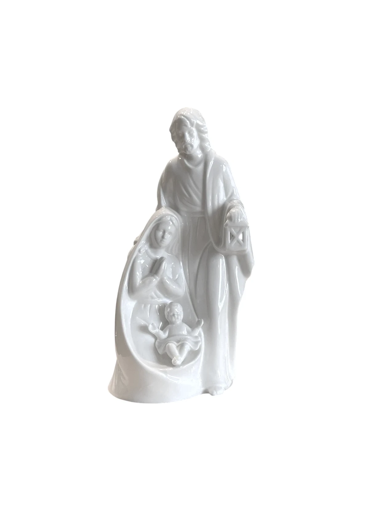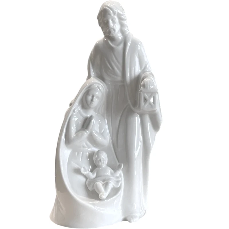 Elegante decorazione che raffigura la natività firmata Henriette. Realizzata in ceramica bianca con luce LED. Un raffinato complemento d’arredo natalizio che illumina con dolcezza la tua casa.