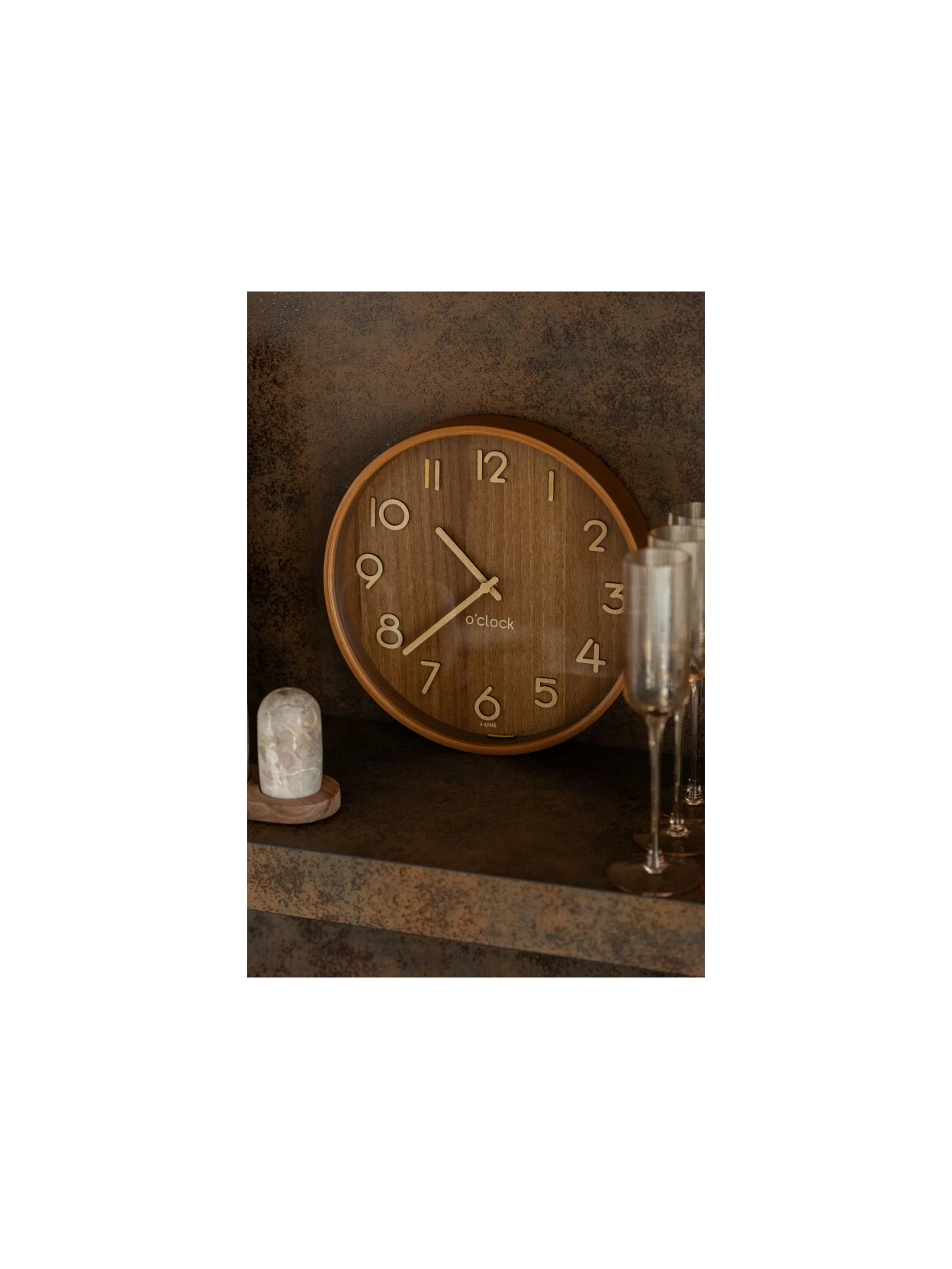 Orologio da parete in legno compensato/MDF naturale scuro, elegante e moderno. Misura Ø 53 cm, perfetto per dare carattere a ogni ambiente.