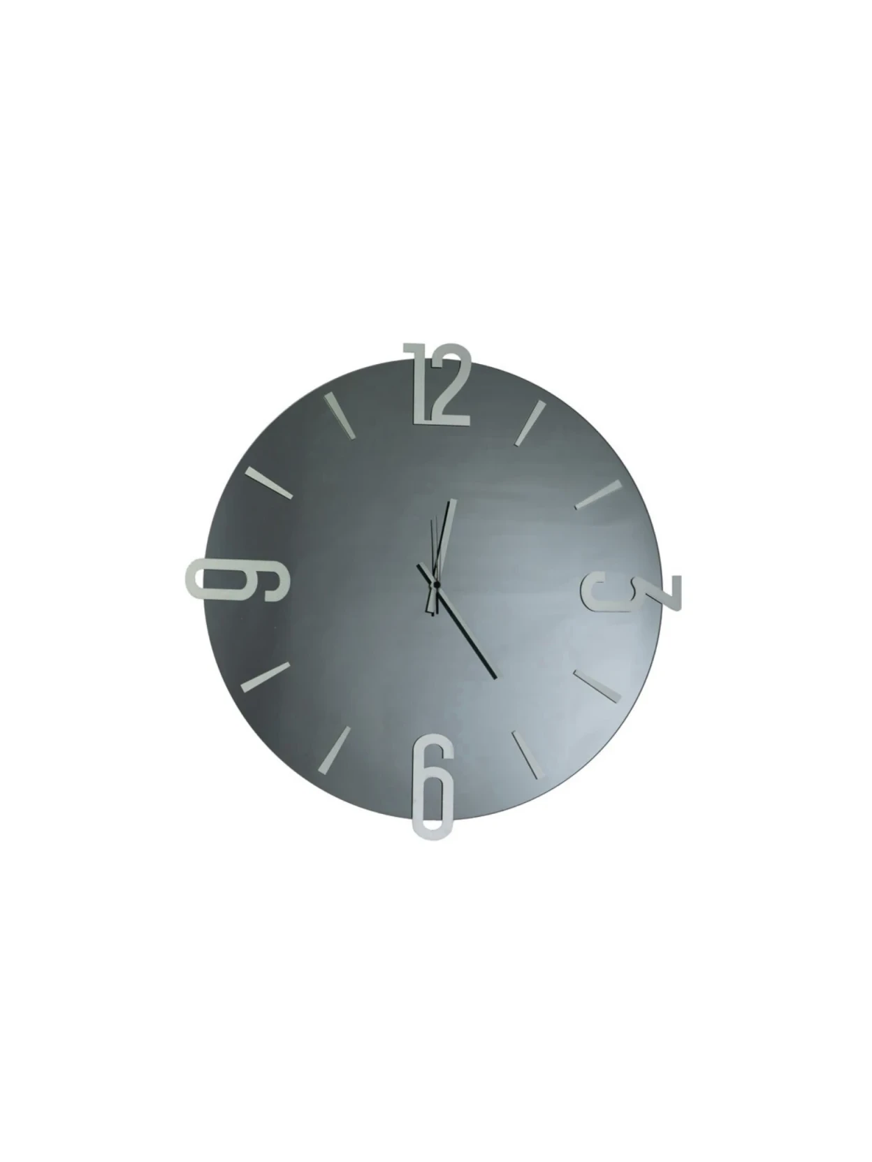 Orologio da parete Alfa di Ceart in specchio nero fumé con numeri e lancette color argento. Un tocco di eleganza moderna che illumina ogni ambiente con stile.