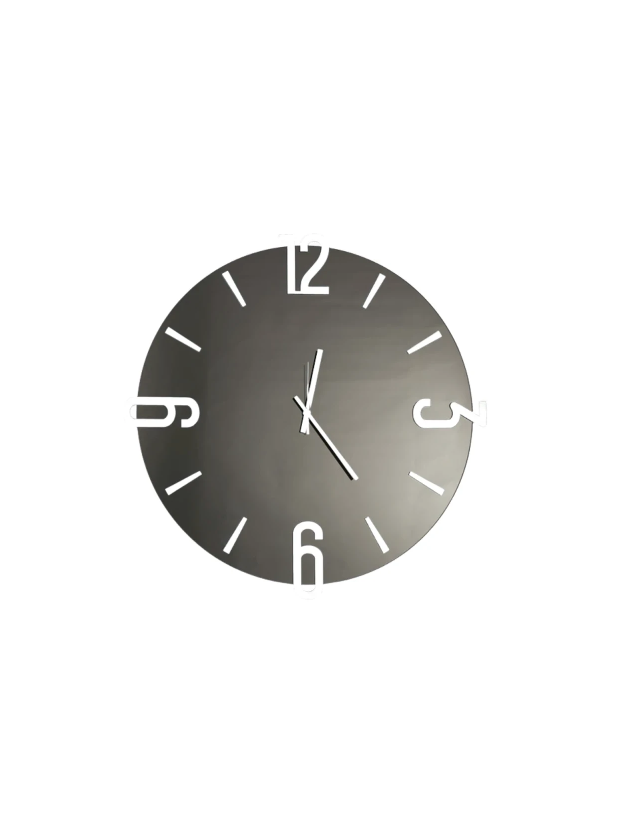 Orologio da parete Alfa di Ceart in specchio nero fumé con dettagli bianchi: eleganza e modernità in un design raffinato. Disponibile nei diametri 45 cm e 60 cm, rifinisce con stile qualsiasi ambiente.