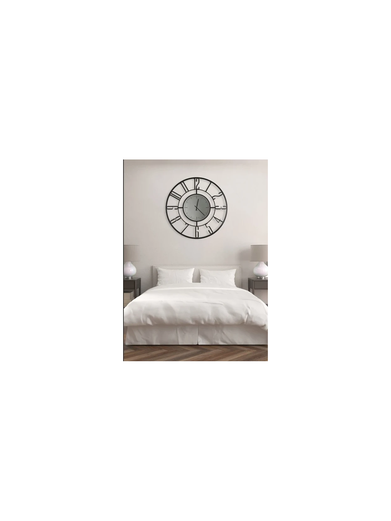Stile e design italiano senza tempo. Orologio da parete in metallo nero pastello con quadrante in vetro specchiato nero fumé. Elegante, moderno e realizzato artigianalmente da Ceart.