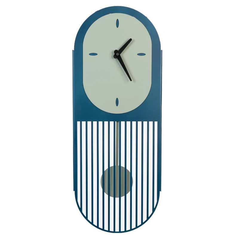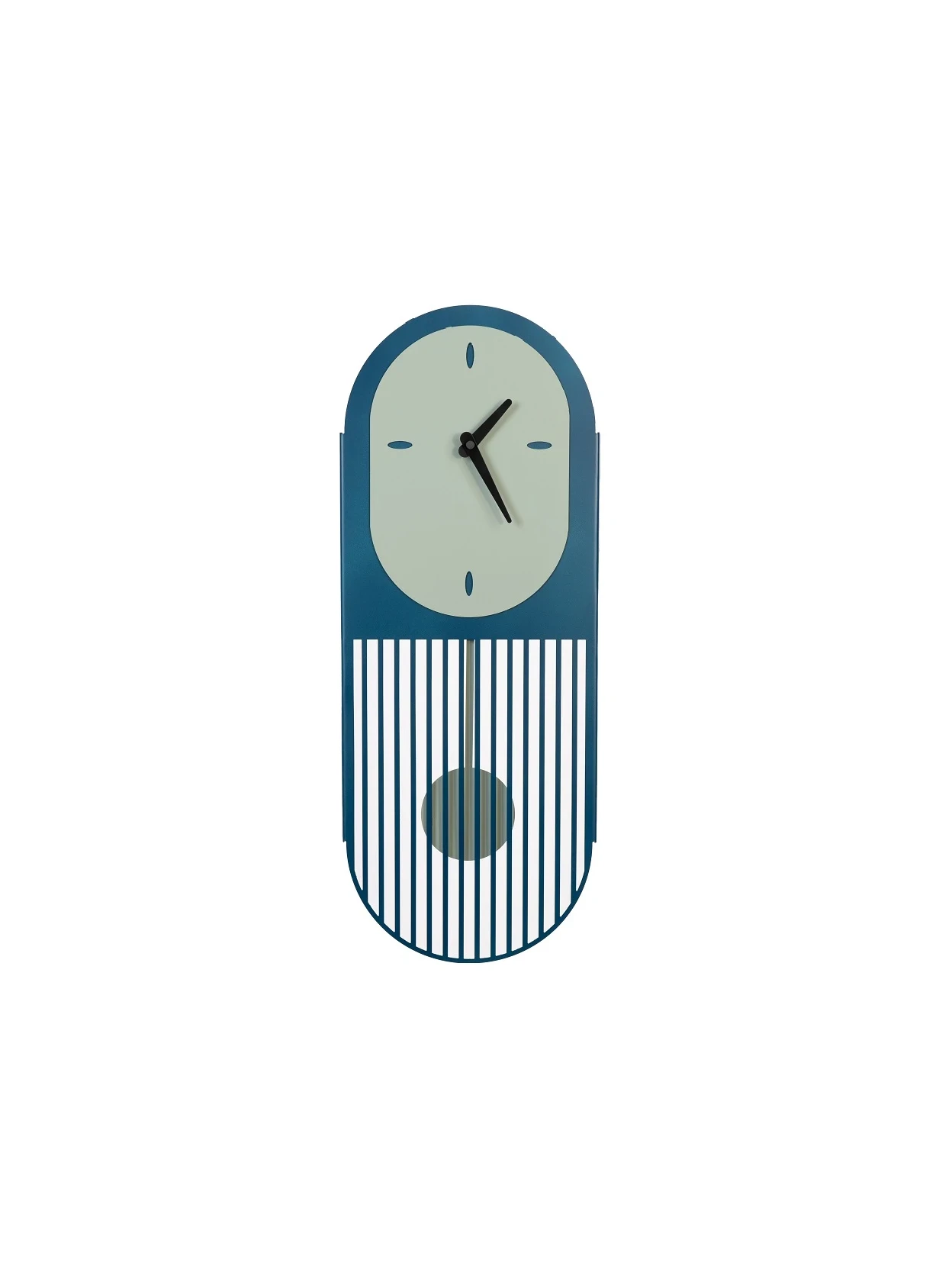 Pendolino è un orologio da parete con movimento a pendolo, realizzato in metallo nei delicati toni petrolio e verde salvia. Design moderno e artigianalità Made in Italy.