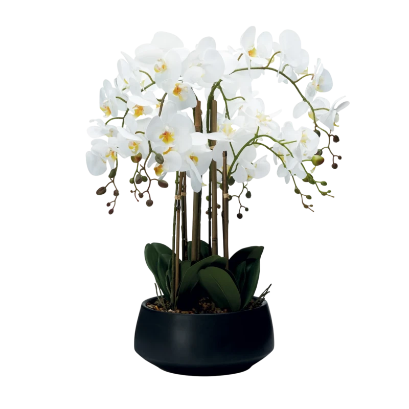 Henriette - Pianta Orchidea 2 Rami con Vaso - Real Touch Flowers Nero