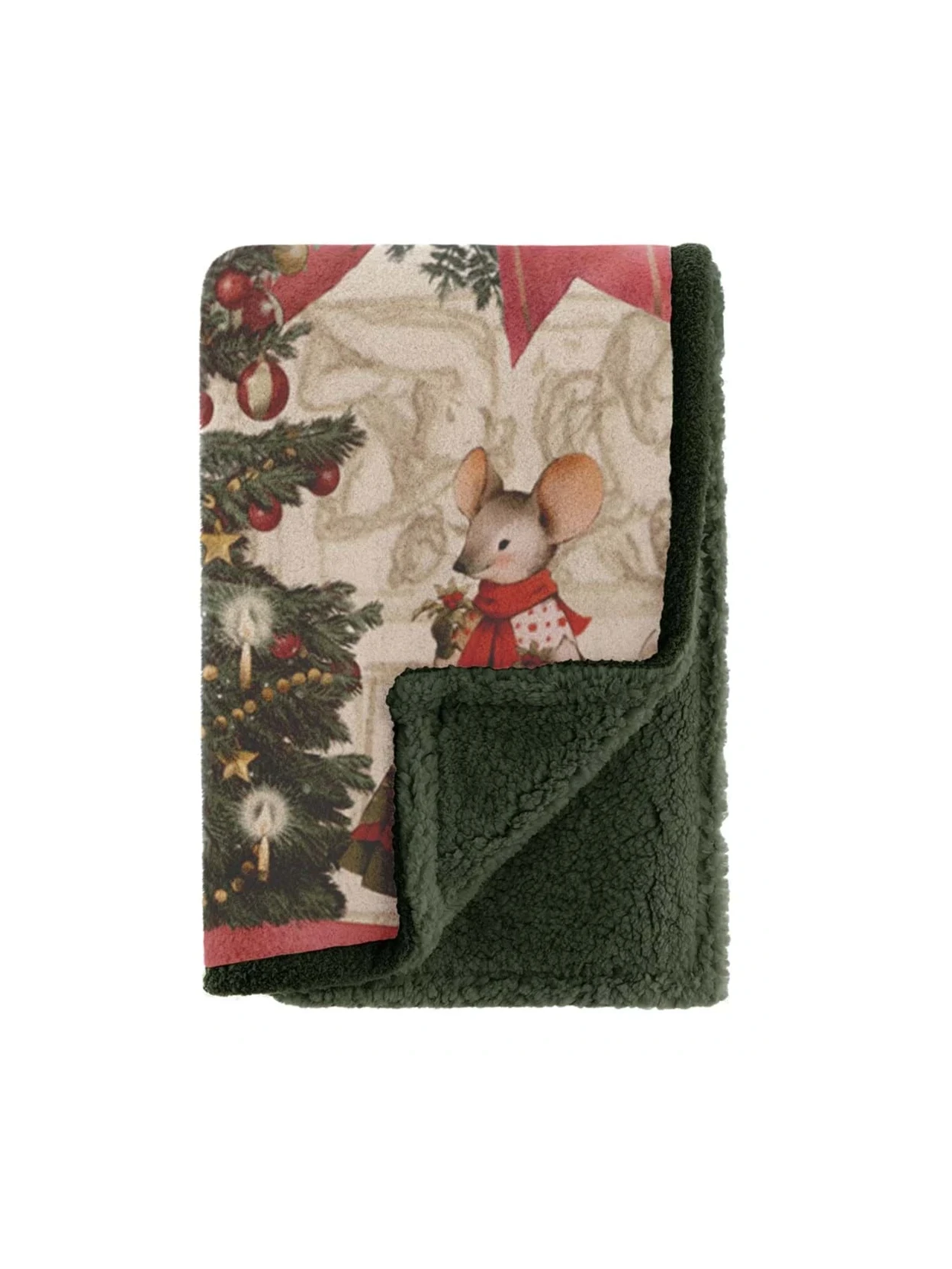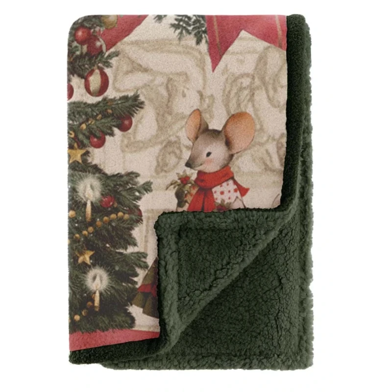 Avvolgente e soffice, questo plaid 160 x 220 cm  (420 gsm) raffigura dolci topini che si scambiano regali in abiti natalizi, tra alberi decorati e fiocchi rossi scintillanti. Morbido e caldo grazie al retro in sherpa, dona un tocco fiabesco e accogliente ai tuoi momenti di relax.