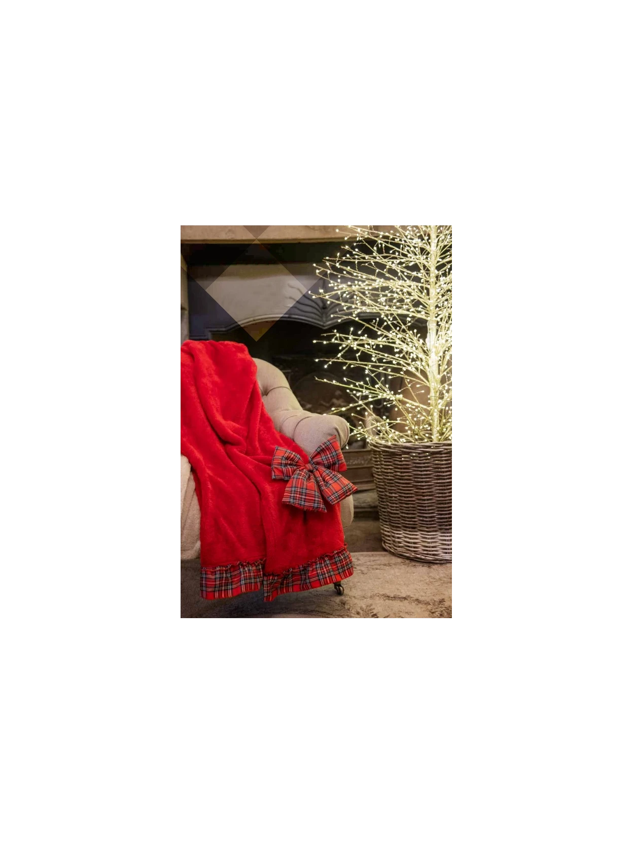Morbido e caldo, realizzato in 100% poliestere, questo plaid tutto rosso è impreziosito da merletto in tartan e un fiocco in tartan applicato. Perfetto per decorare divani, poltrone o letti con un tocco festivo ed elegante.