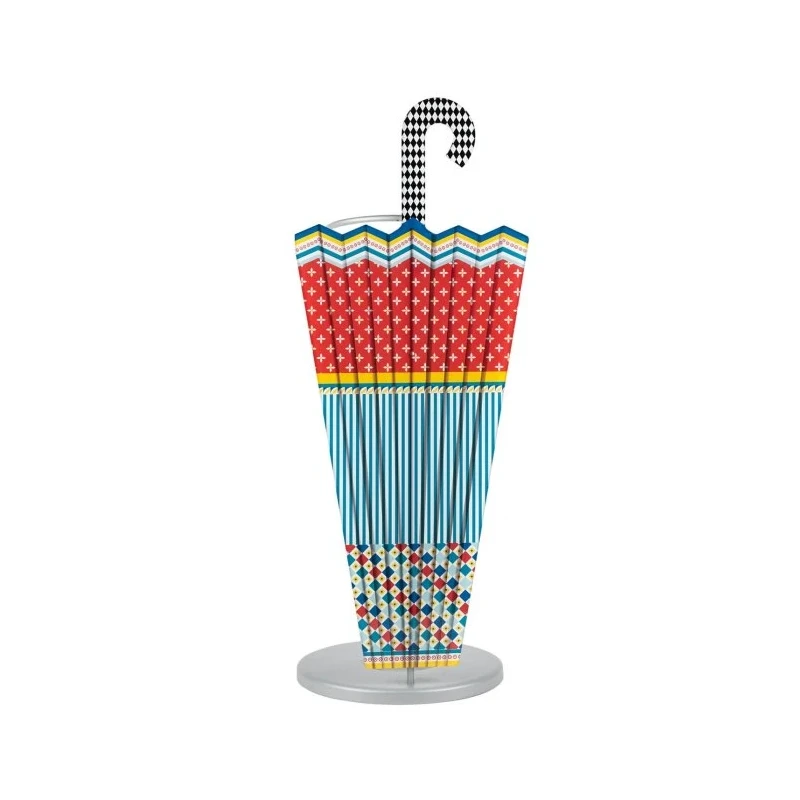 Il Portaombrelli Decor Foulard porta colore e allegria negli spazi di casa o ufficio. Realizzato in cristallo acrilico e metallo, combina leggerezza, resistenza e design originale. La grafica vivace e il supporto stabile mantengono gli ombrelli in ordine, trasformando un oggetto funzionale in un elemento decorativo unico e moderno.