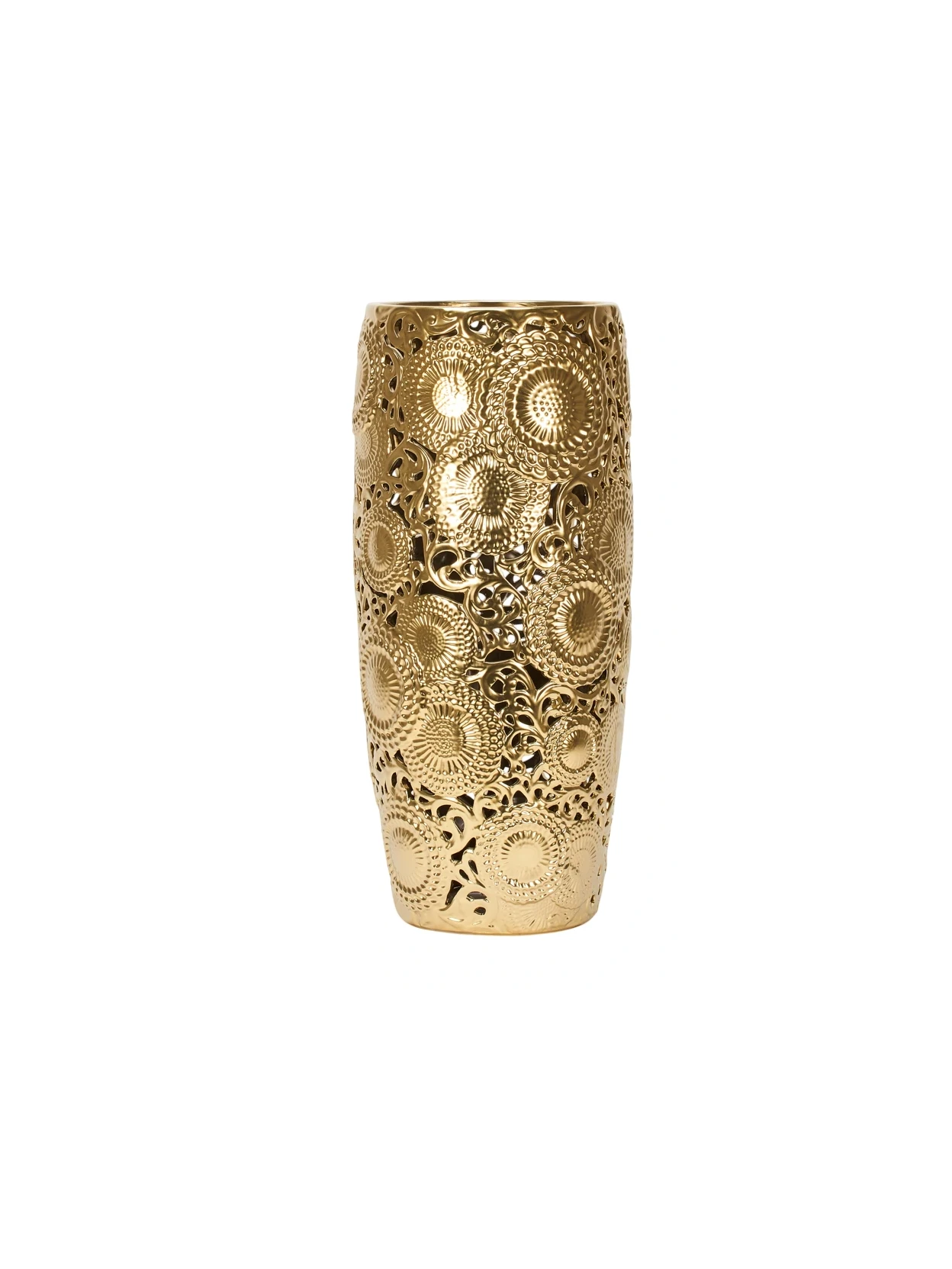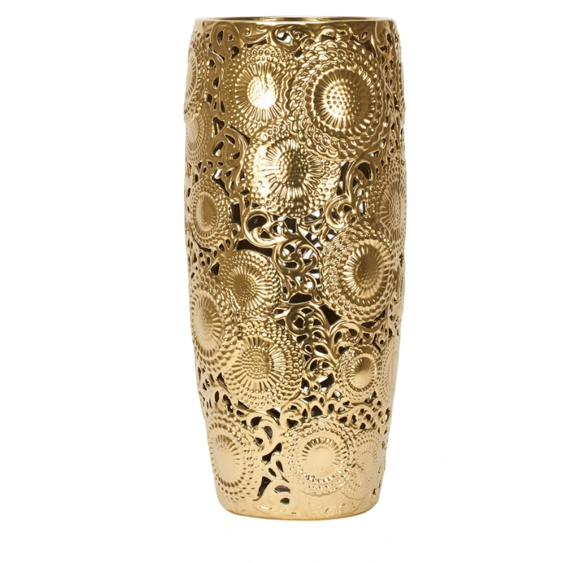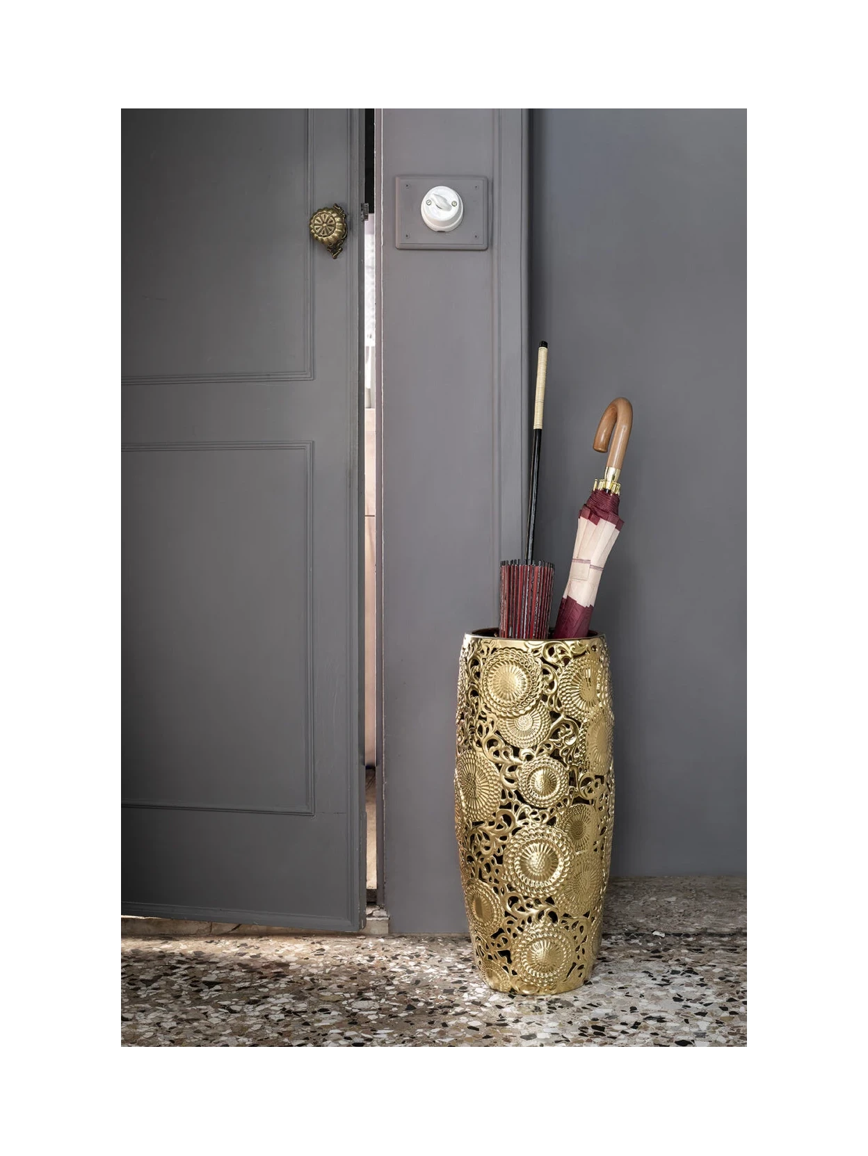 Elegante portaombrelli di Henriette della collezione Kyoto. Realizzato in ceramica dorata con motivo traforato che ricorda il pizzo. Un raffinato complemento d’arredo che aggiunge luce e stile all’ingresso della tua casa.