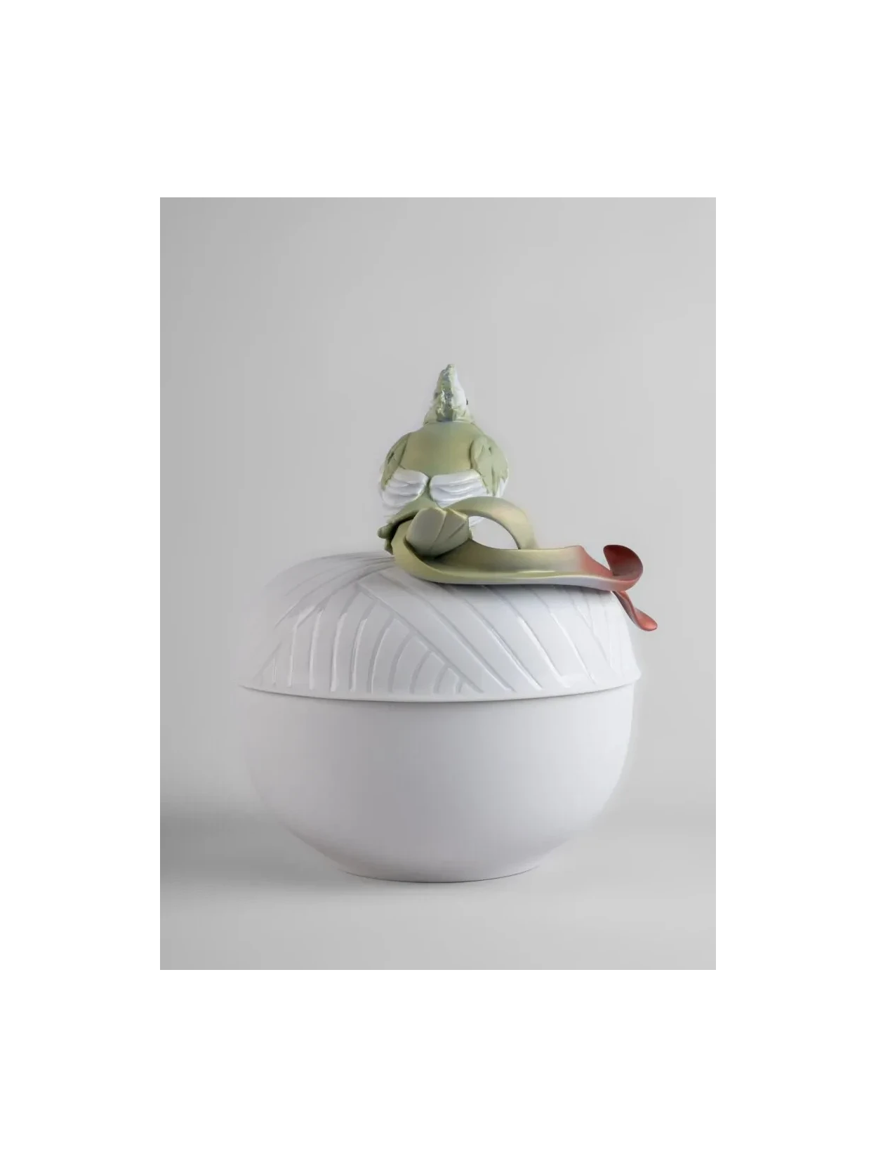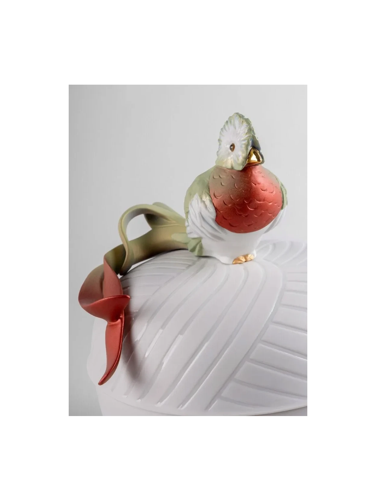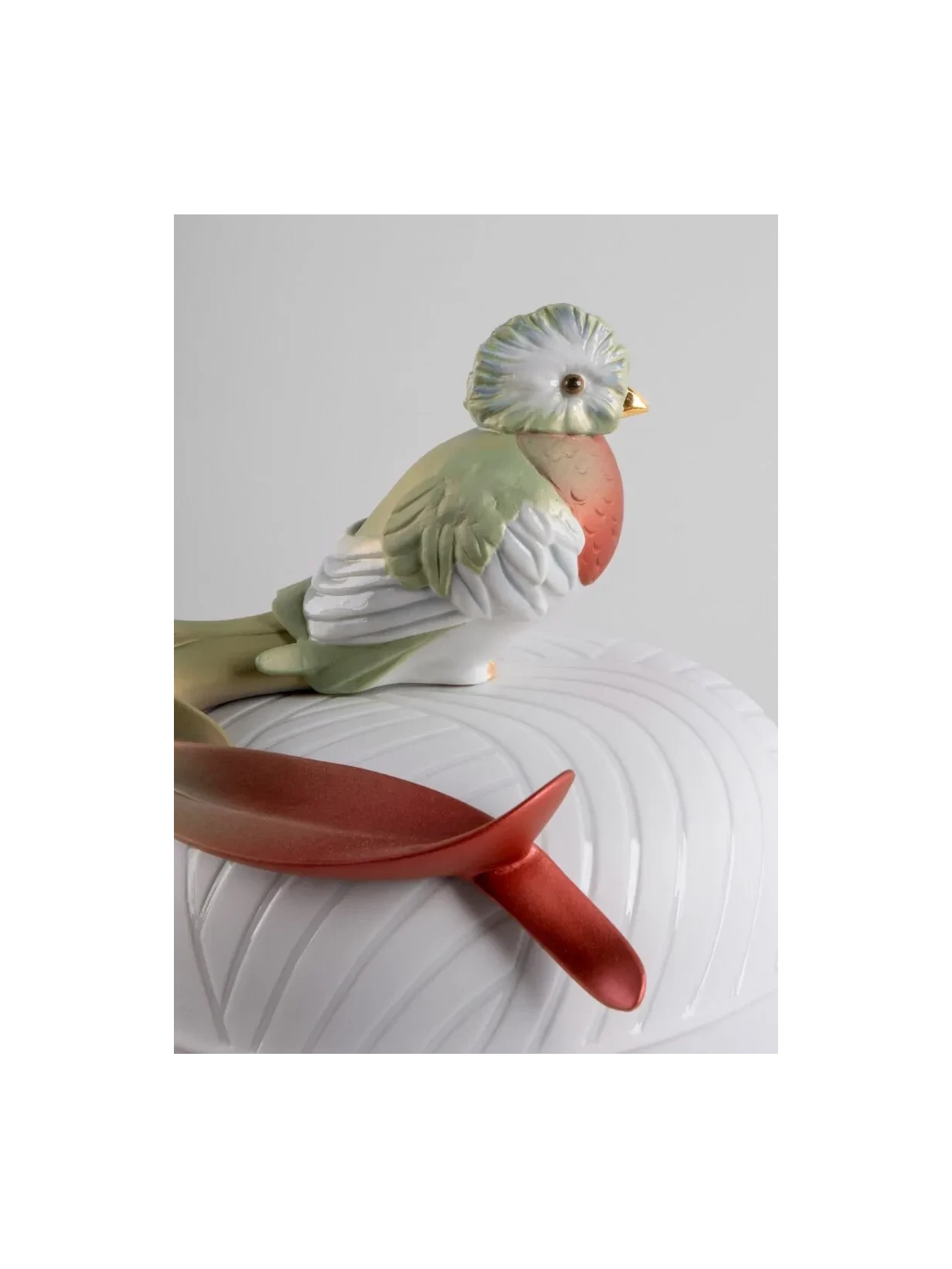 Lo scrigno Quetzal in porcellana di Lladró è un elegante contenitore in porcellana opaca con dettagli lucidi e un magnifico quetzal decorato con pigmenti metallici e iridescenti. Un pezzo prezioso che unisce funzionalità, arte e colori vibranti.