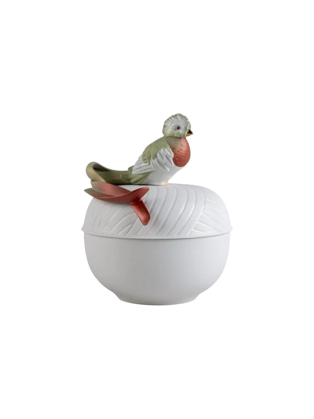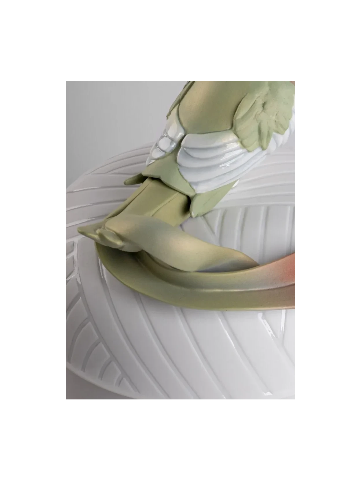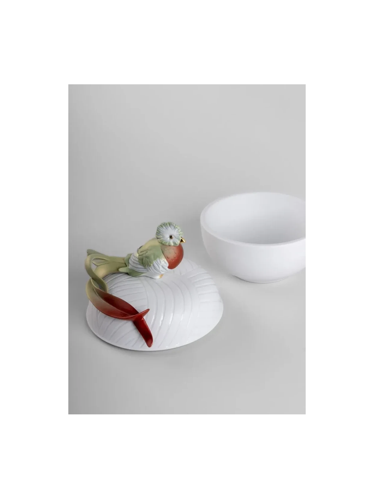 Lo scrigno Quetzal in porcellana di Lladró è un elegante contenitore in porcellana opaca con dettagli lucidi e un magnifico quetzal decorato con pigmenti metallici e iridescenti. Un pezzo prezioso che unisce funzionalità, arte e colori vibranti.