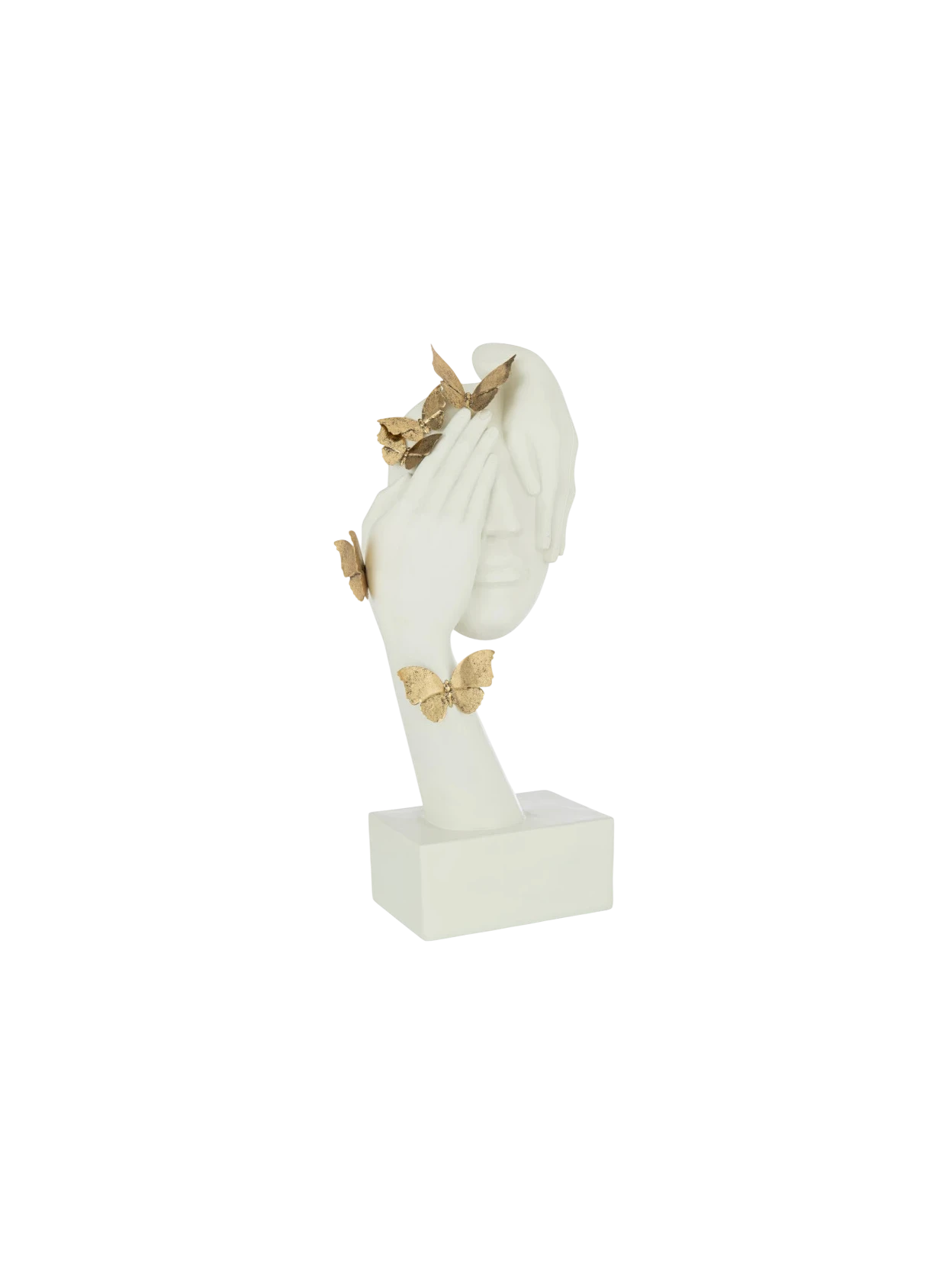 J-Line - Scultura Viso Farfalle - Bianco / Oro