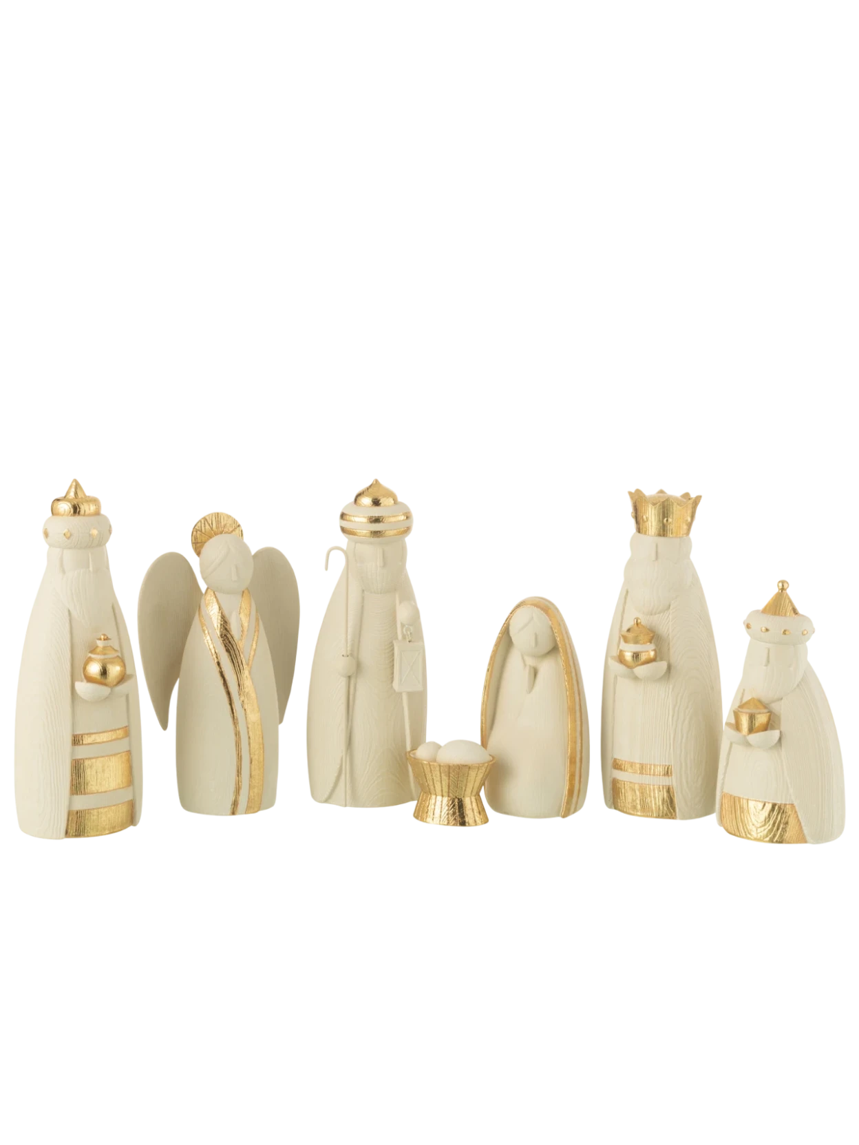 J-Line - Presepio 7 Pezzi - Resina Bianco / Oro