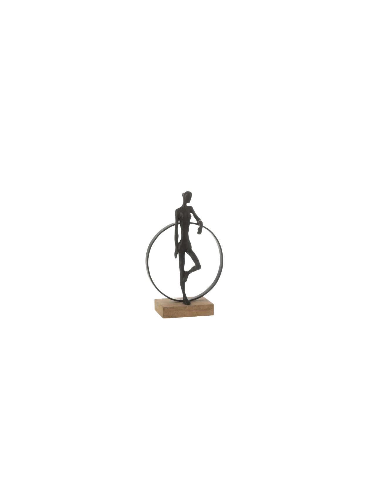 Dal design minimal questa scultura realizzata in resina raffigura un uomo che regge un cerchio. I dettagli curati e le linee fluide rendono questa figura un elemento decorativo raffinato, ideale per ambienti moderni e di design. Realizzata in resina resistente in finitura ferro nero, è perfetta come idea regalo oppure come pezzo distintivo per arricchire la tua casa con un tocco di eleganza dinamica.