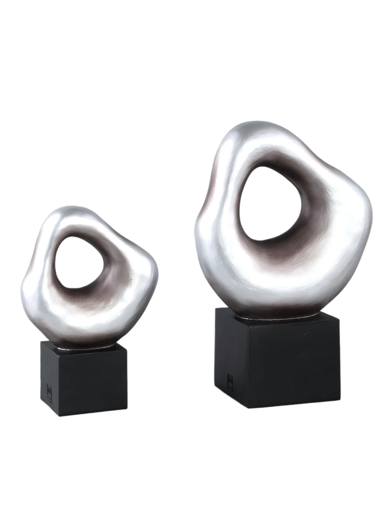 La scultura Dolcey di PTMD in argento metallizzato dona un tocco di eleganza moderna a ogni ambiente. Realizzata a mano e disponibile in due misure, unisce arte e design contemporaneo.