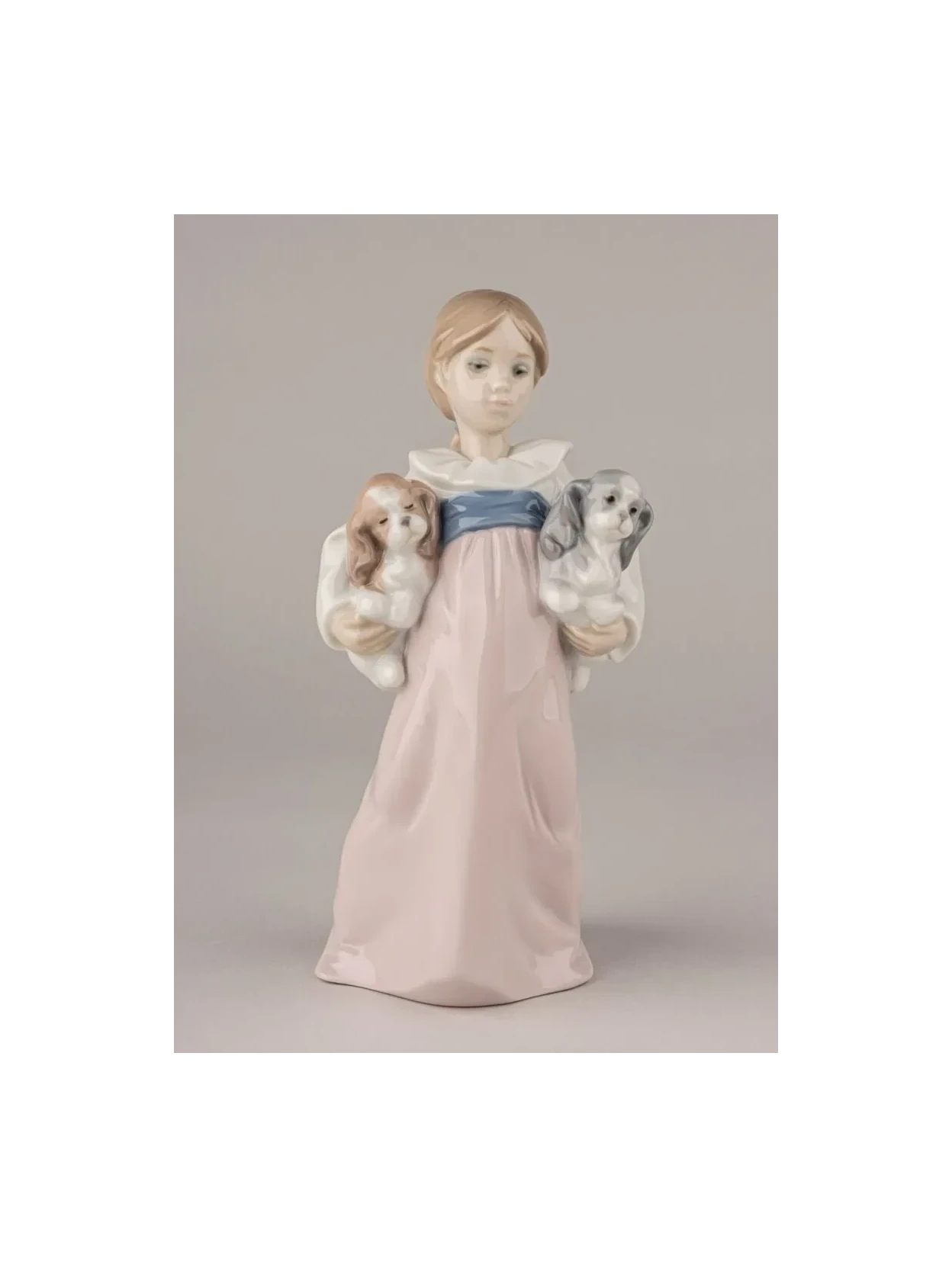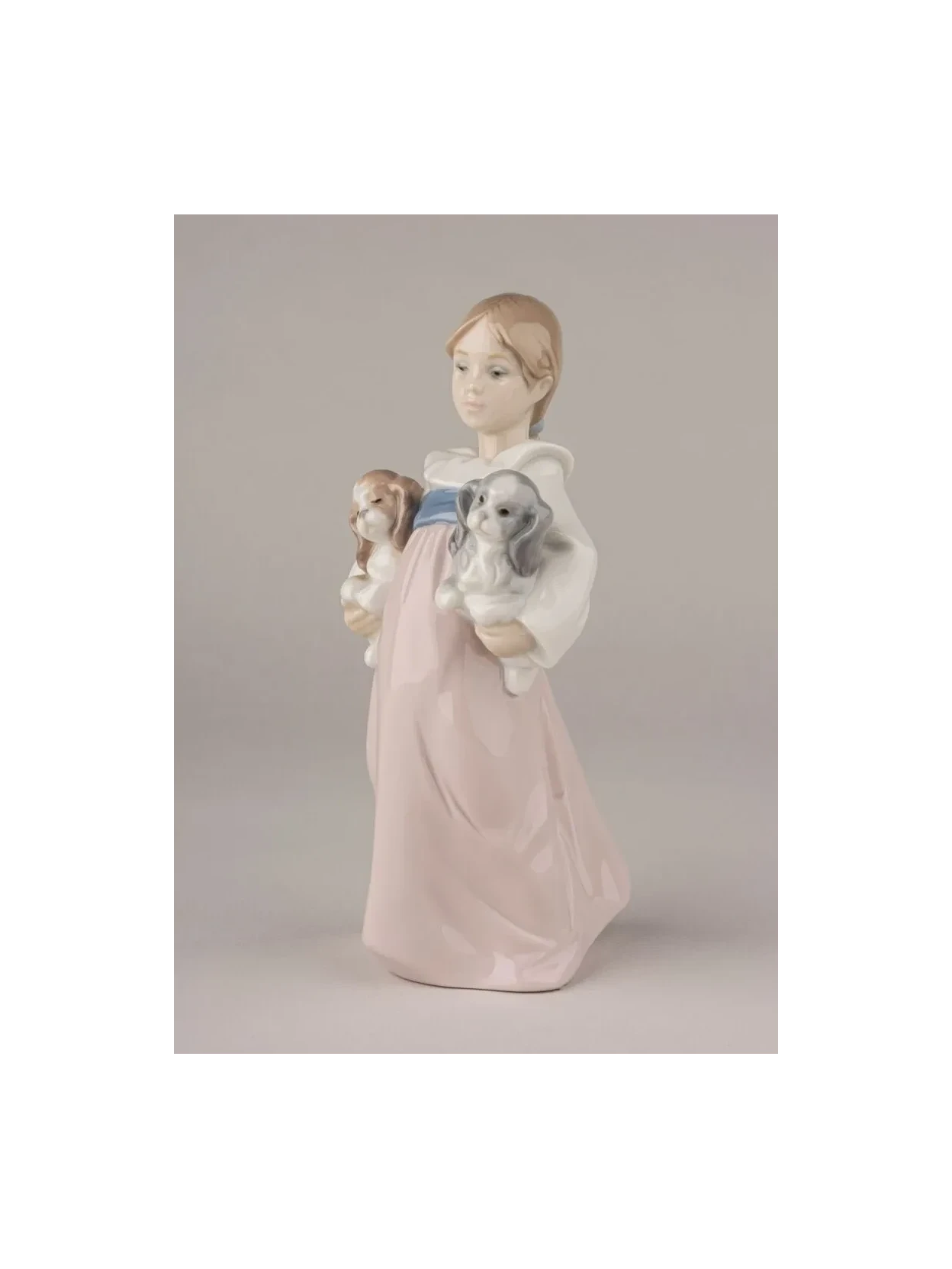 Scultura con Cuccioli in porcellana lucida firmata Lladró: dolcezza e grazia in un capolavoro artigianale dai delicati toni pastello.