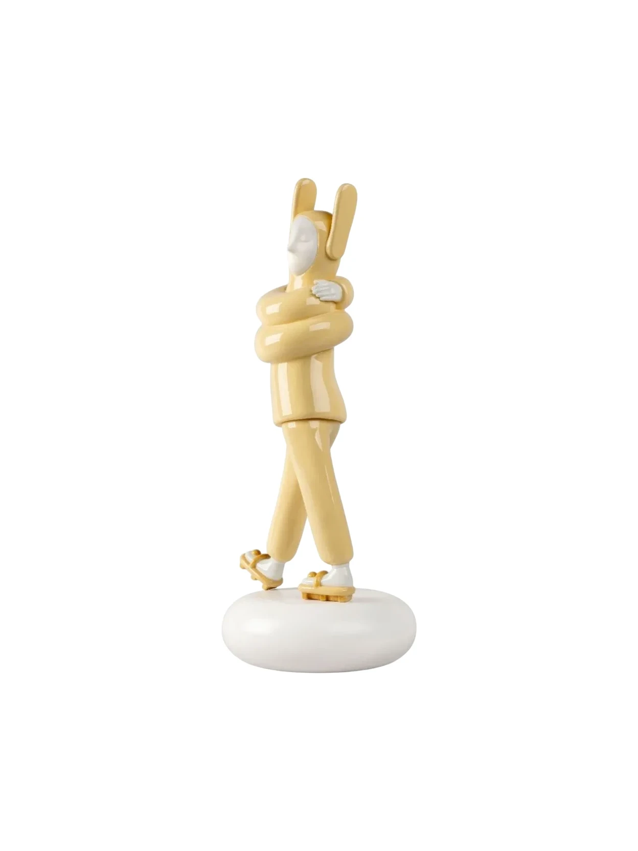 Scultura in porcellana gialla lucida firmata Jaime Hayon che rappresenta un essere umano che si abbraccia. Una creazione simbolica di armonia, cura di sé e design contemporaneo.