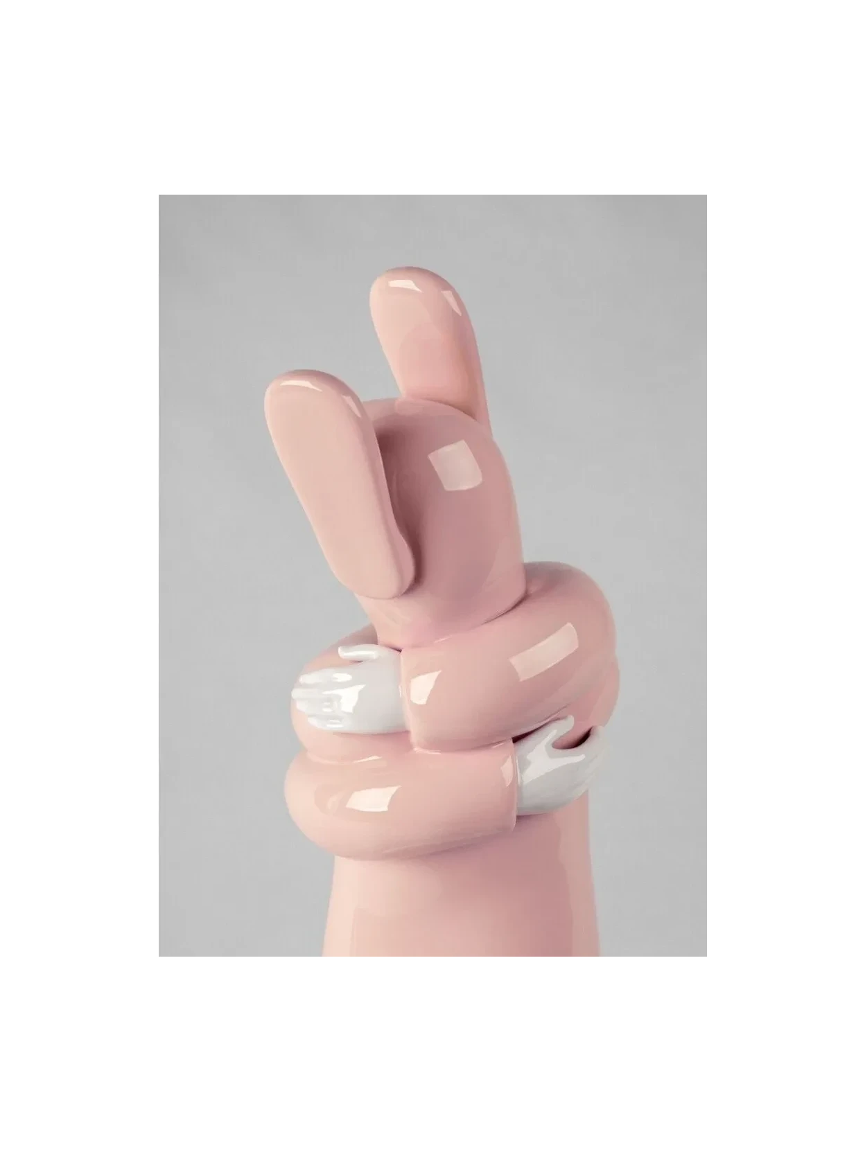 Scultura in porcellana rosa lucida firmata Jaime Hayon che raffigura un essere umano che si abbraccia. Una creazione simbolica di armonia, delicatezza e design contemporaneo.
