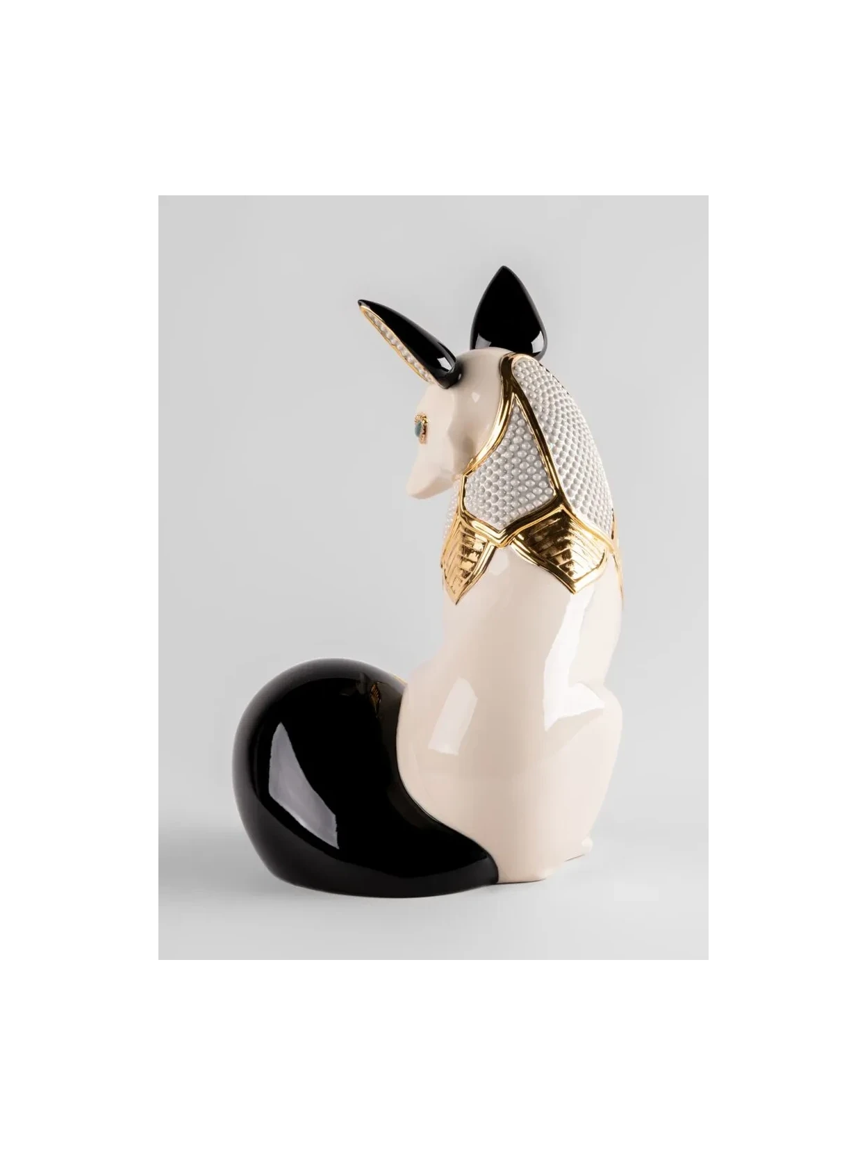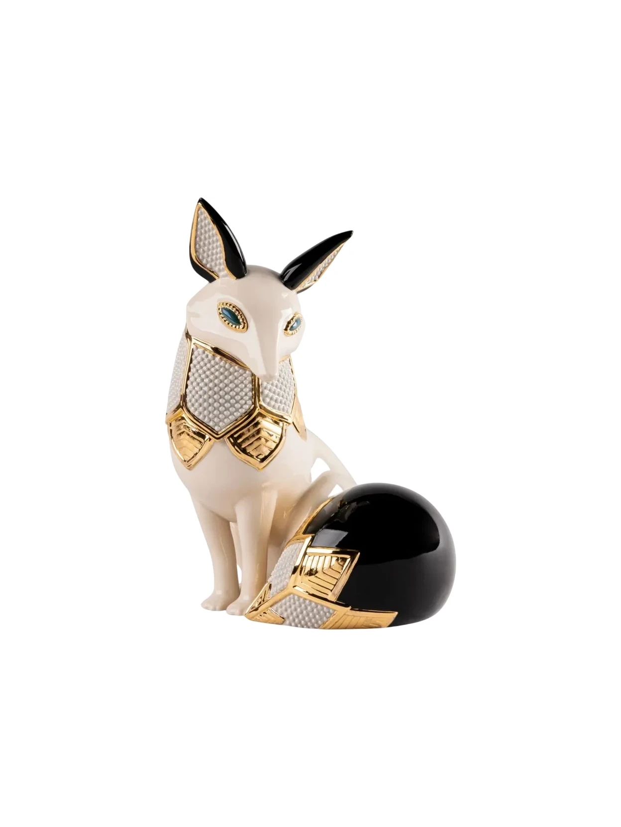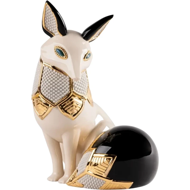 La Scultura volpe Gioiello di Lladró incarna la perfetta fusione tra arte e preziosità. Realizzata a mano in porcellana brillante con raffinati dettagli dorati e occhi verde smeraldo, è un omaggio alla grazia, alla bellezza e all’eleganza geometrica dell’art déco.