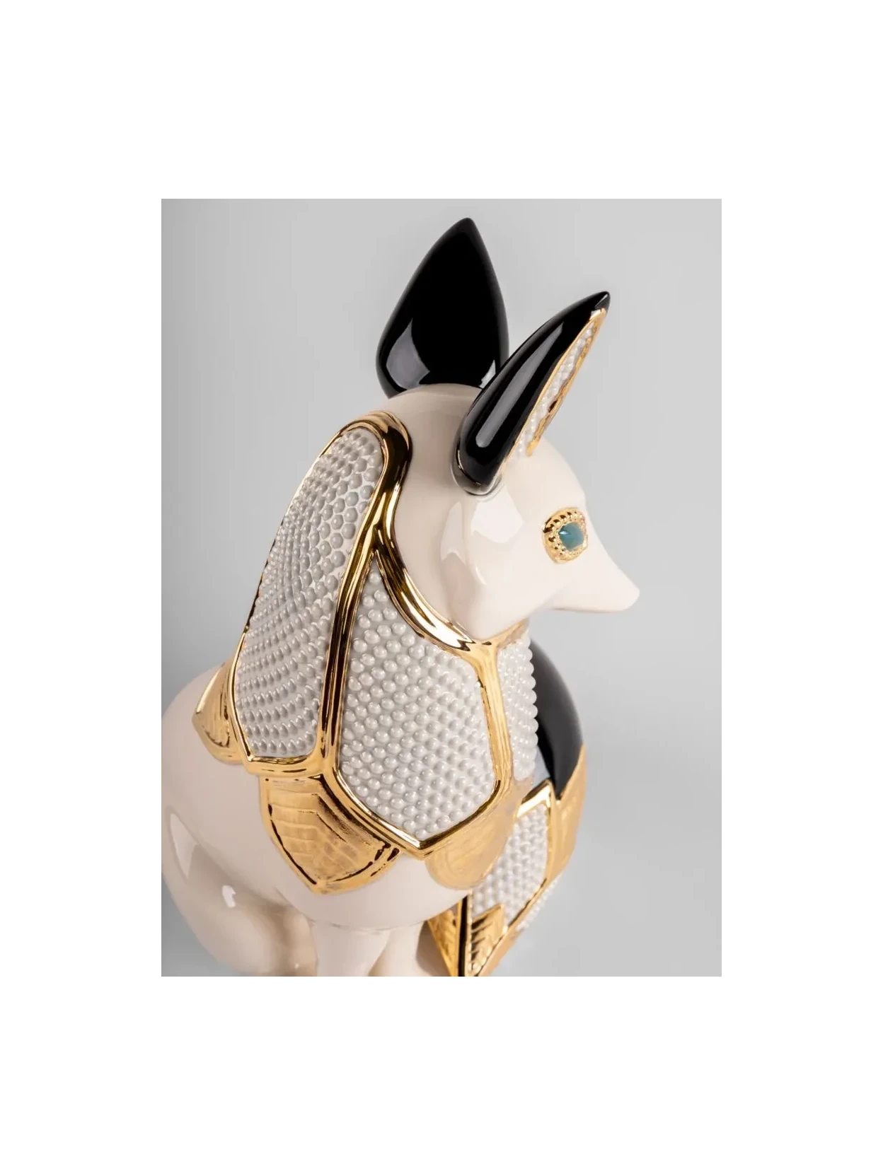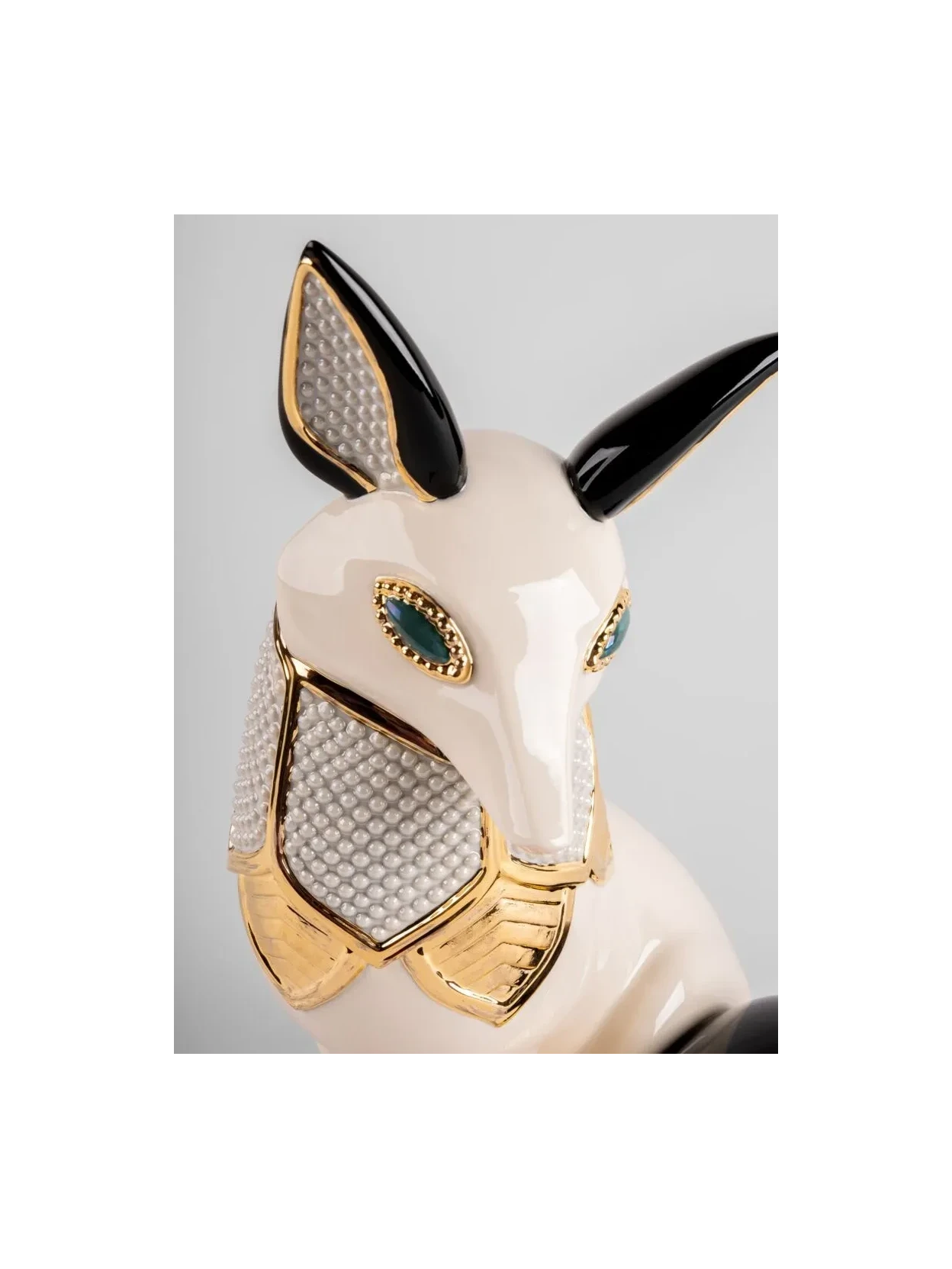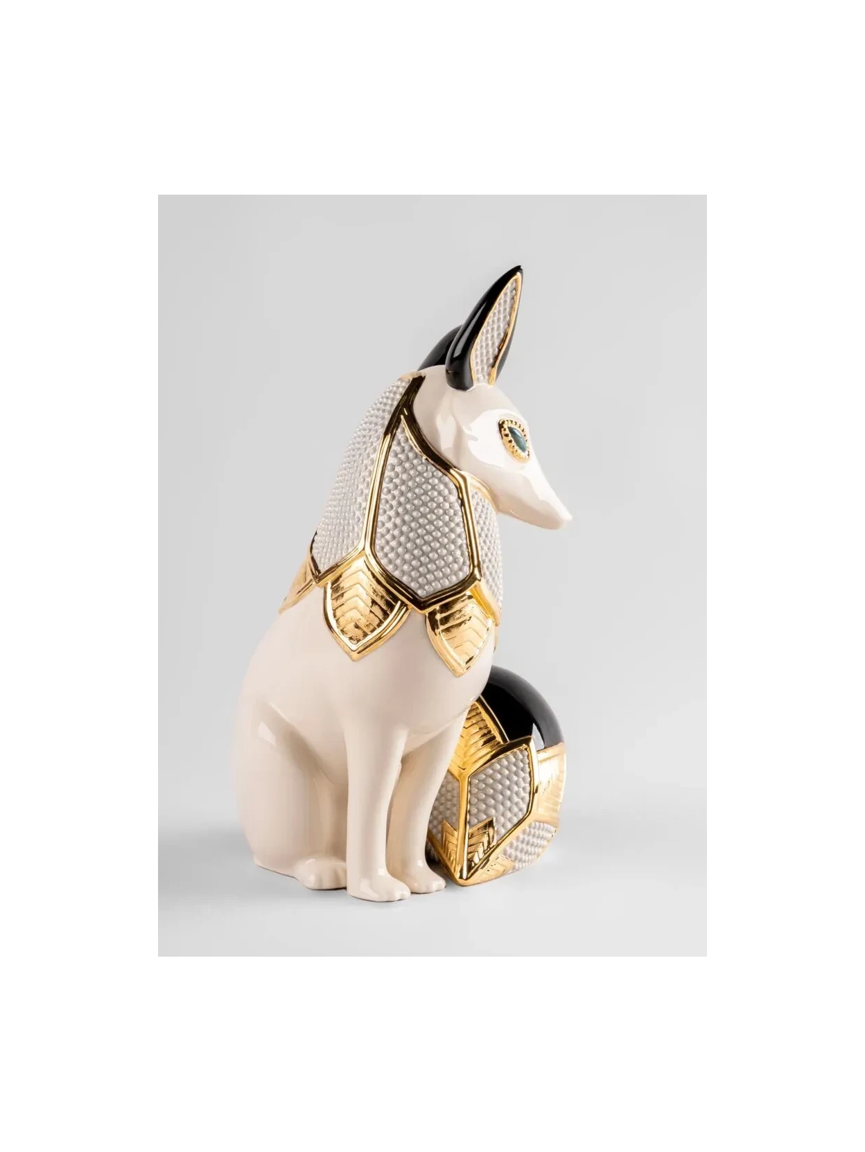 La Scultura volpe Gioiello di Lladró incarna la perfetta fusione tra arte e preziosità. Realizzata a mano in porcellana brillante con raffinati dettagli dorati e occhi verde smeraldo, è un omaggio alla grazia, alla bellezza e all’eleganza geometrica dell’art déco.