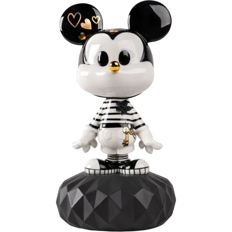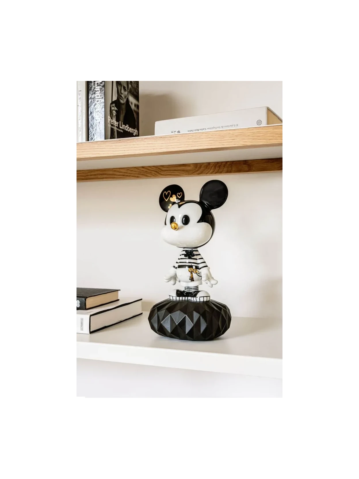 Scultura Mickey Black & White in porcellana firmata Lladró, una reinterpretazione contemporanea dell’iconico Topolino decorato a mano con disegni in bianco e nero e dettagli in oro. Un pezzo raffinato e simbolico, firmato da Eva Maria Cuerva, che unisce artigianalità, design e lo spirito più autentico dell’universo Disney.
