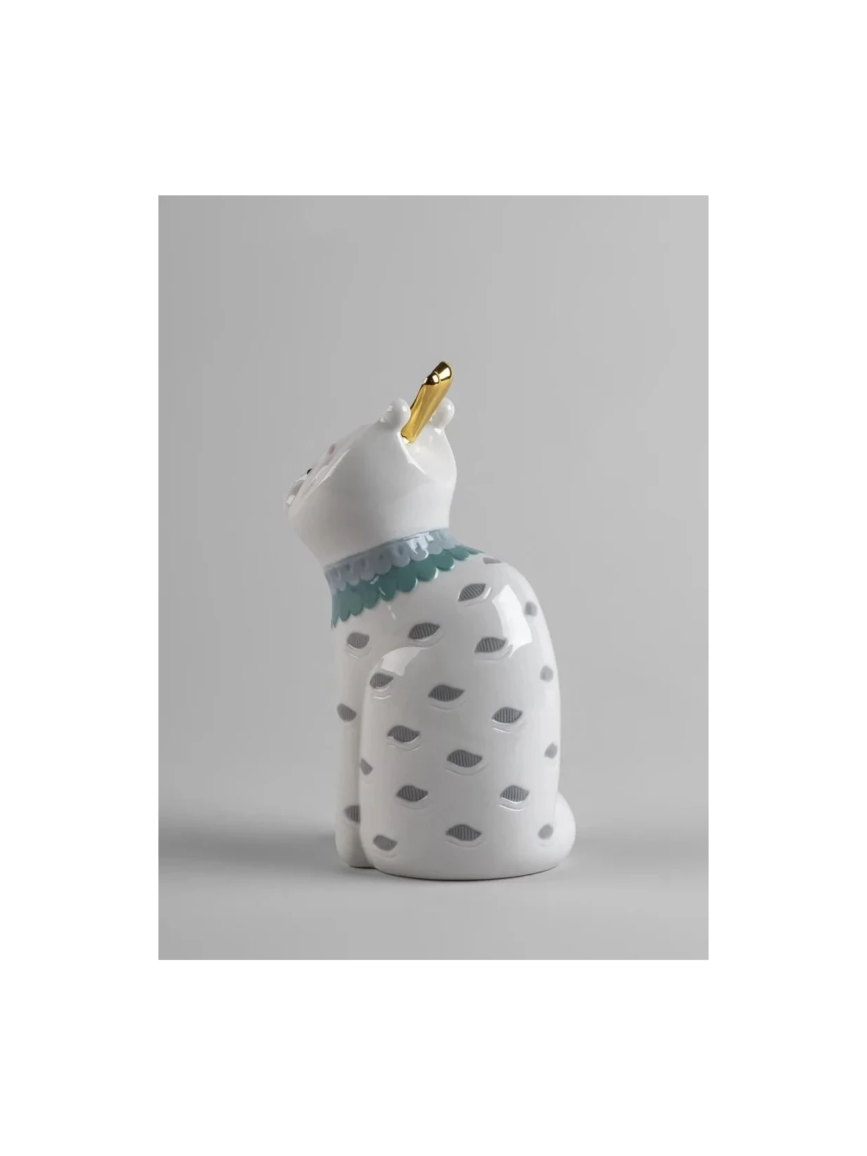 La Scultura Gatto Amici Sorprendenti fa parte della nuova collezione di Lladró dedicata all’amicizia tra animali apparentemente inconciliabili. Con un approccio giocoso, moderno e fantasioso, la collezione trasforma la porcellana in opere d’arte divertenti, affettuose e contemporanee. Il gatto è modellato con cura e realizzato in porcellana lucida, decorata con smalti e vernici in tonalità pastello e rifiniti con dettagli in oro lucido, che conferiscono eleganza e raffinatezza. Questa combinazione di colori e materiali rende ogni pezzo unico, capace di catturare l’attenzione e portare un tocco di gioia negli ambienti domestici.