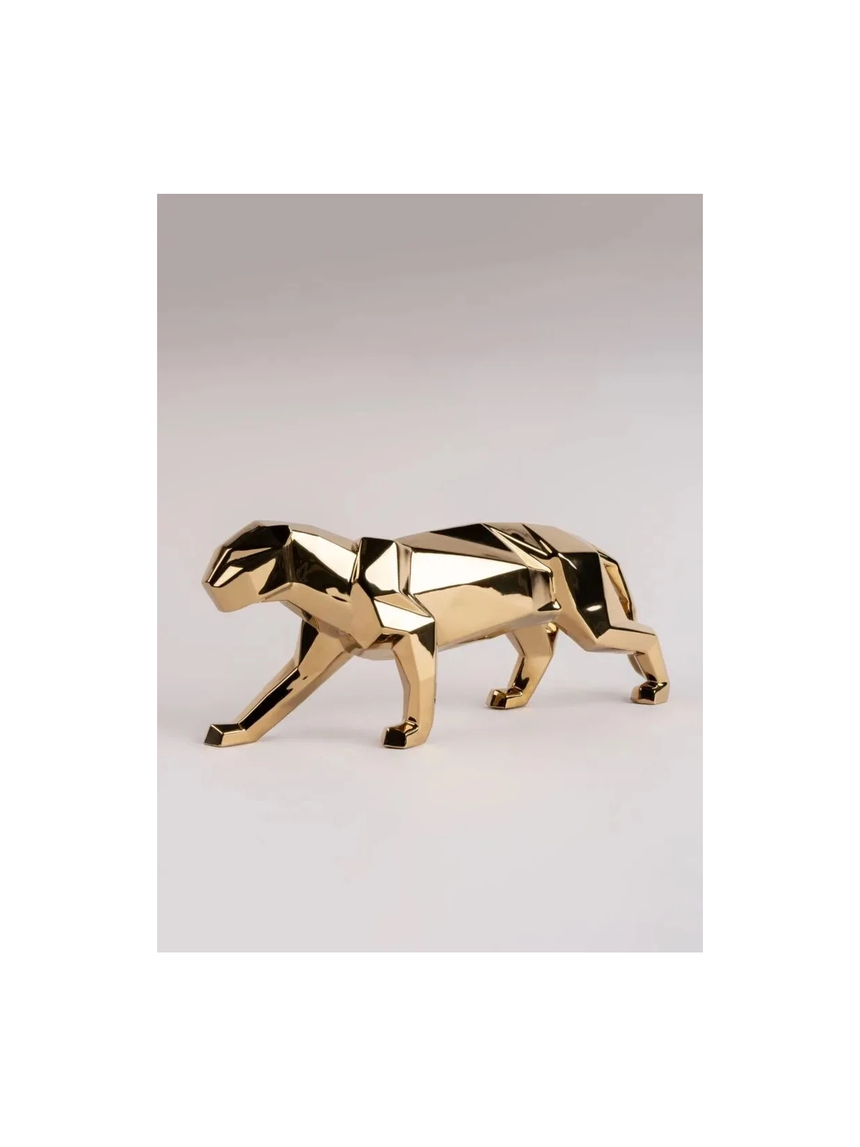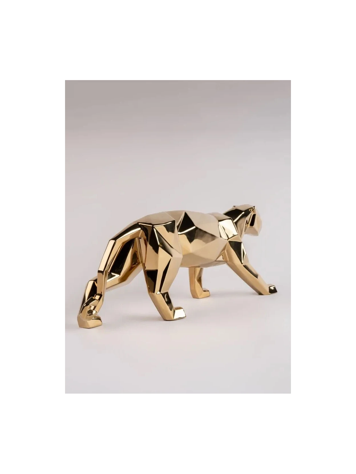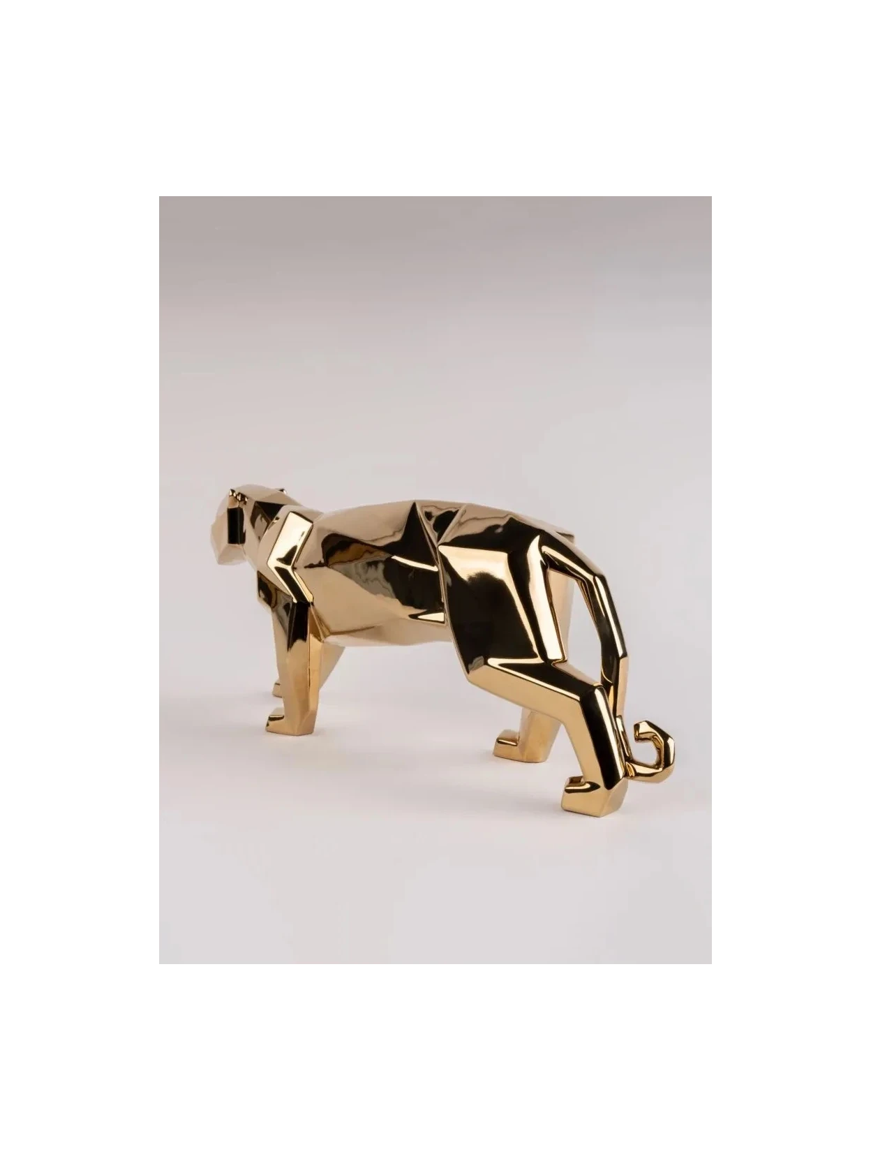 La scultura pantera in porcellana con finitura in oro metallizzato appartiene alla collezione Origami e offre una reinterpretazione contemporanea dell’arte giapponese dell’origami, combinando eleganza geometrica e forte impatto decorativo.