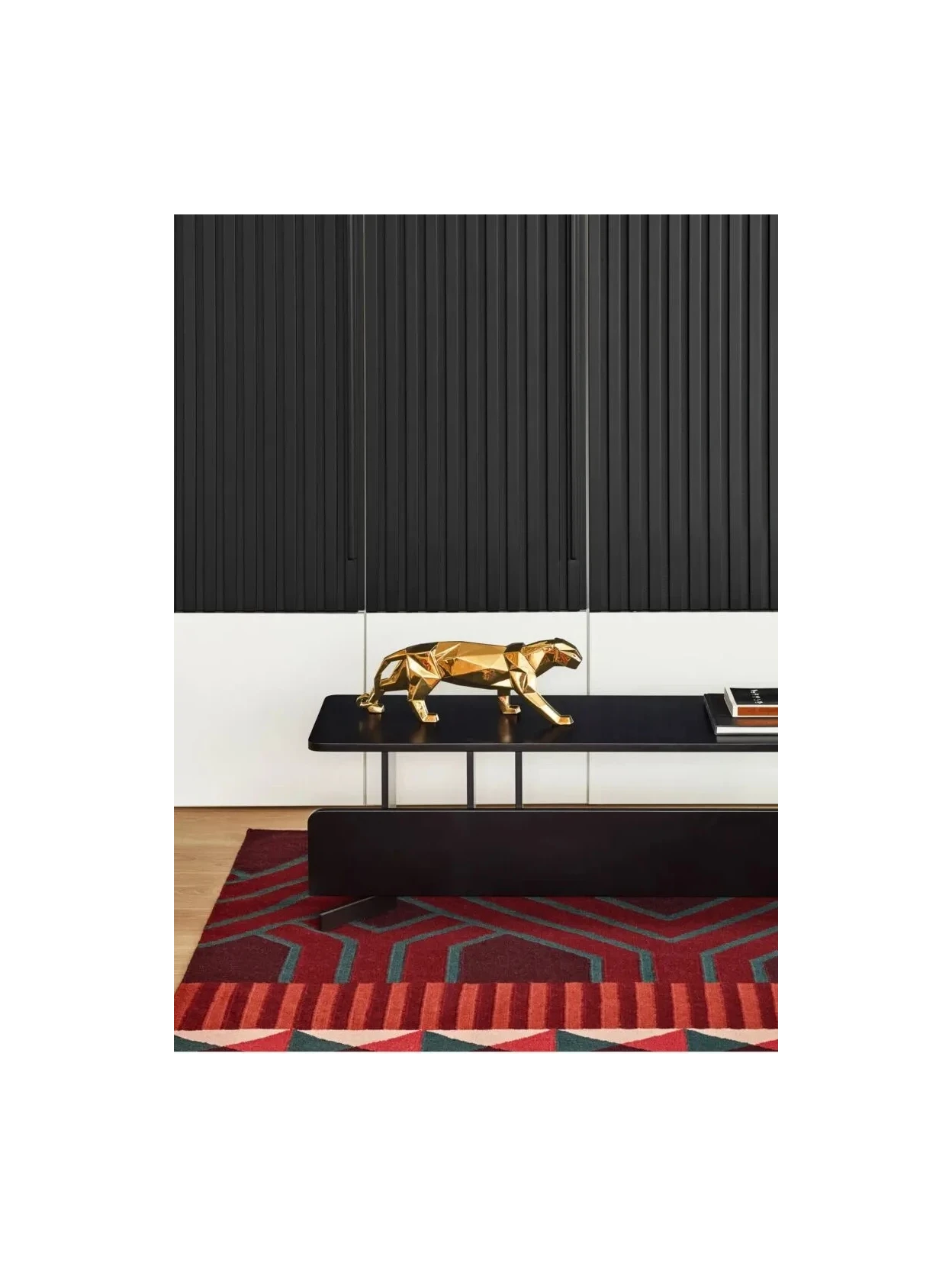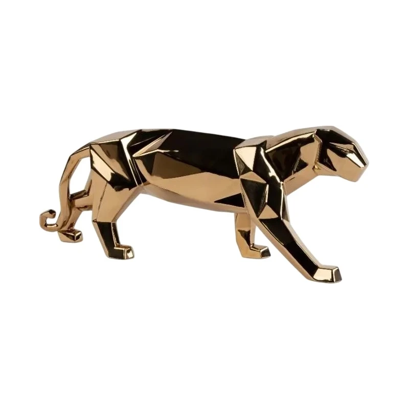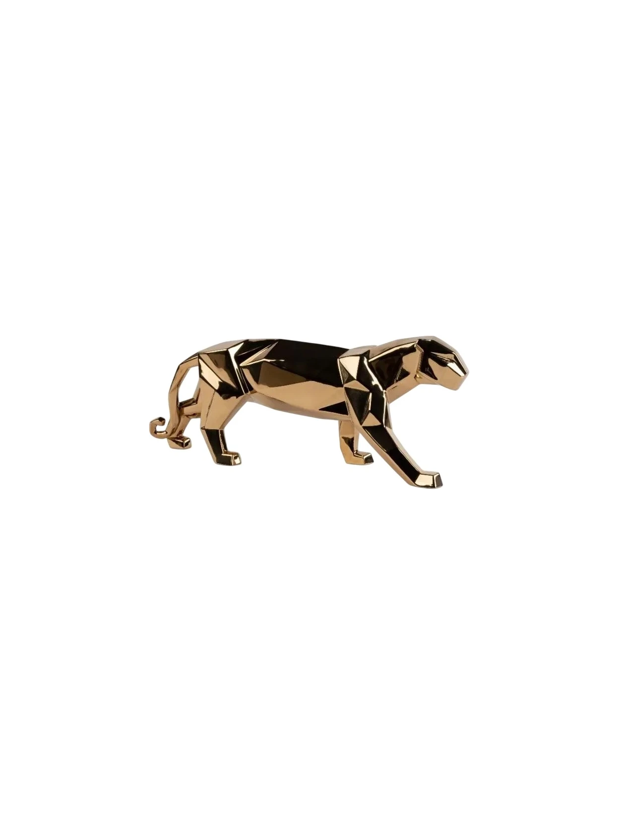 La scultura pantera in porcellana con finitura in oro metallizzato appartiene alla collezione Origami e offre una reinterpretazione contemporanea dell’arte giapponese dell’origami, combinando eleganza geometrica e forte impatto decorativo.