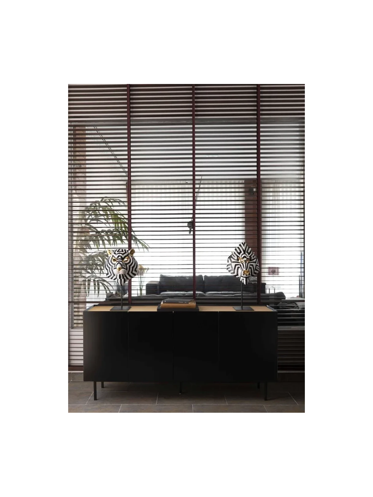 La maschera Gufo Nero Oro di Lladró è una scultura in porcellana brillante decorata in nero e lustro oro, con elementi metallici in argento sterling placcato oro. Un’opera moderna ed elegante, realizzata a mano in Spagna, ideale per ambienti dal gusto ricercato.