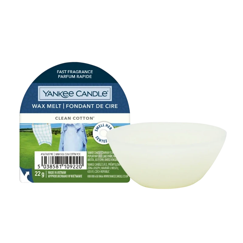 Clean Cotton® di Yankee Candle è una tart in cera dalle note verdi e luminose che si aprono come una brezza mattutina tra le lenzuola, mentre il cuore di mughetto e fiori bianchi aggiunge una delicatezza floreale che profuma di pulito autentico. Il tutto è vivacizzato da un tocco agrumato di limone fresco, che dona energia e leggerezza, per poi adagiarsi su un fondo morbido di vetiver che avvolge l’ambiente in una sensazione di comfort e serenità. È una fragranza che trasmette ordine, cura e benessere, perfetta per chi desidera portare in casa la piacevole sensazione del “panno fresco di bucato” e l’atmosfera limpida di un giorno di sole.