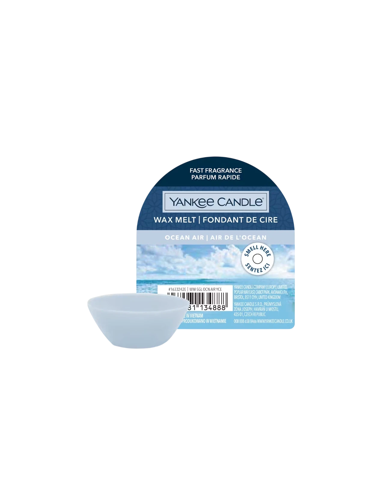 Ocean Air di Yankee Candle è una tart in cera che cattura l’essenza di un pomeriggio perfetto al mare: l’aria salmastra e cristallina si intreccia con note ozonate che evocano pulizia e libertà. Il cuore fiorito di gelsomino dona un tocco delicato e raffinato, mentre l’ambra bianca e il legno di sandalo avvolgono i sensi in una scia calda, morbida e rilassante. Un’esperienza olfattiva rigenerante, che trasforma ogni ambiente in un rifugio costiero senza tempo.