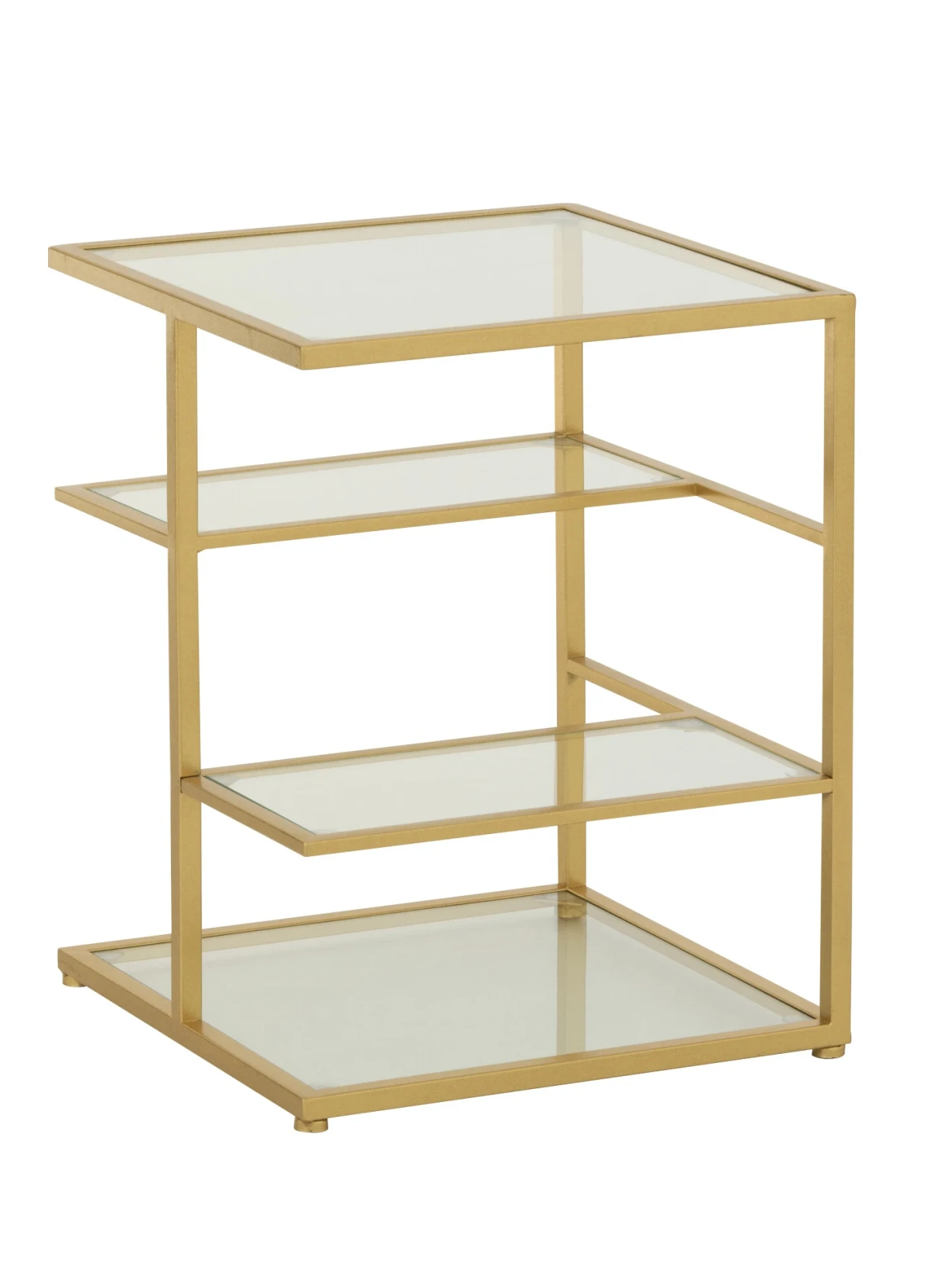 Il design minimal ed elegante e la lucentezza del vetro si incontrano in questo tavolino. Caratterizzato da una struttura in metallo dorato e ripiani in vetro trasparente è il complemento perfetto per arredare casa con stile.