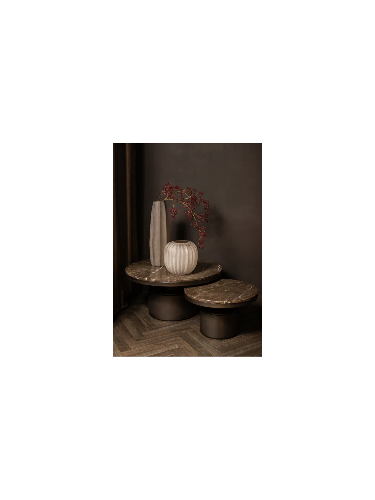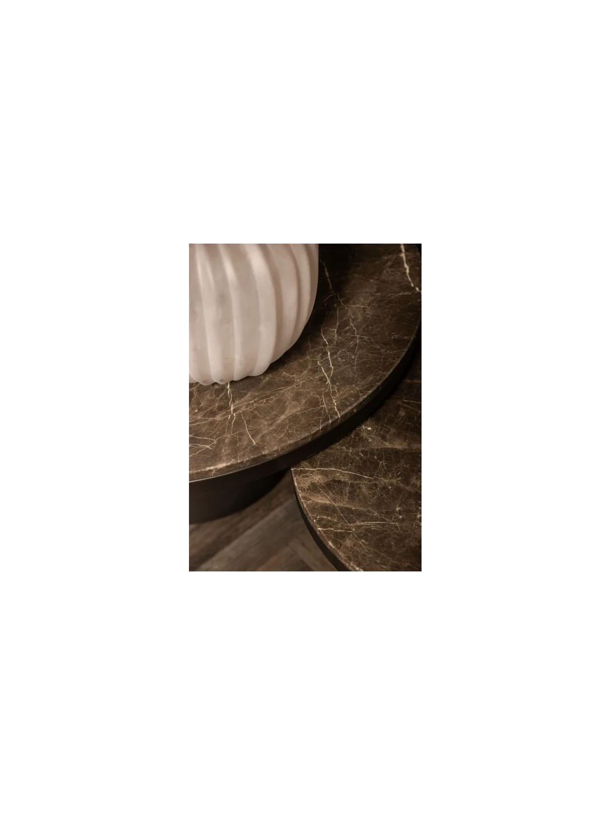 Il tavolino Breght marrone e nero di PTMD è un capolavoro di stile e materiali pregiati. Realizzato a mano con una struttura in acciaio nero e un piano in marmo naturale, unisce design contemporaneo e qualità artigianale in un unico elemento d’arredo di grande impatto visivo. Le dimensioni di Ø 90 x H 45 cm e il peso di 38 kg lo rendono solido e stabile, ideale come tavolino da caffè o punto focale del soggiorno. Il marmo marrone con venature naturali crea un effetto elegante e sofisticato, mentre la base in metallo scuro dona contrasto e carattere, sottolineando lo stile moderno e industrial chic tipico della PTMD Collection. Ogni tavolino è un pezzo unico, frutto di una lavorazione artigianale che valorizza la texture e le sfumature del marmo. Perfetto per ambienti contemporanei, loft o living di design, il tavolino Breght unisce eleganza, funzionalità e materiali autentici in un arredo destinato a durare nel tempo.