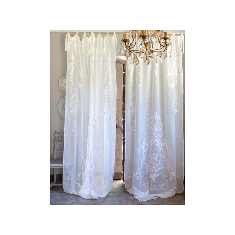 Elegante tenda in 100% lino bianco, con delicati ricami di edera che aggiungono charme e raffinatezza. Misure: 140×290 cm.