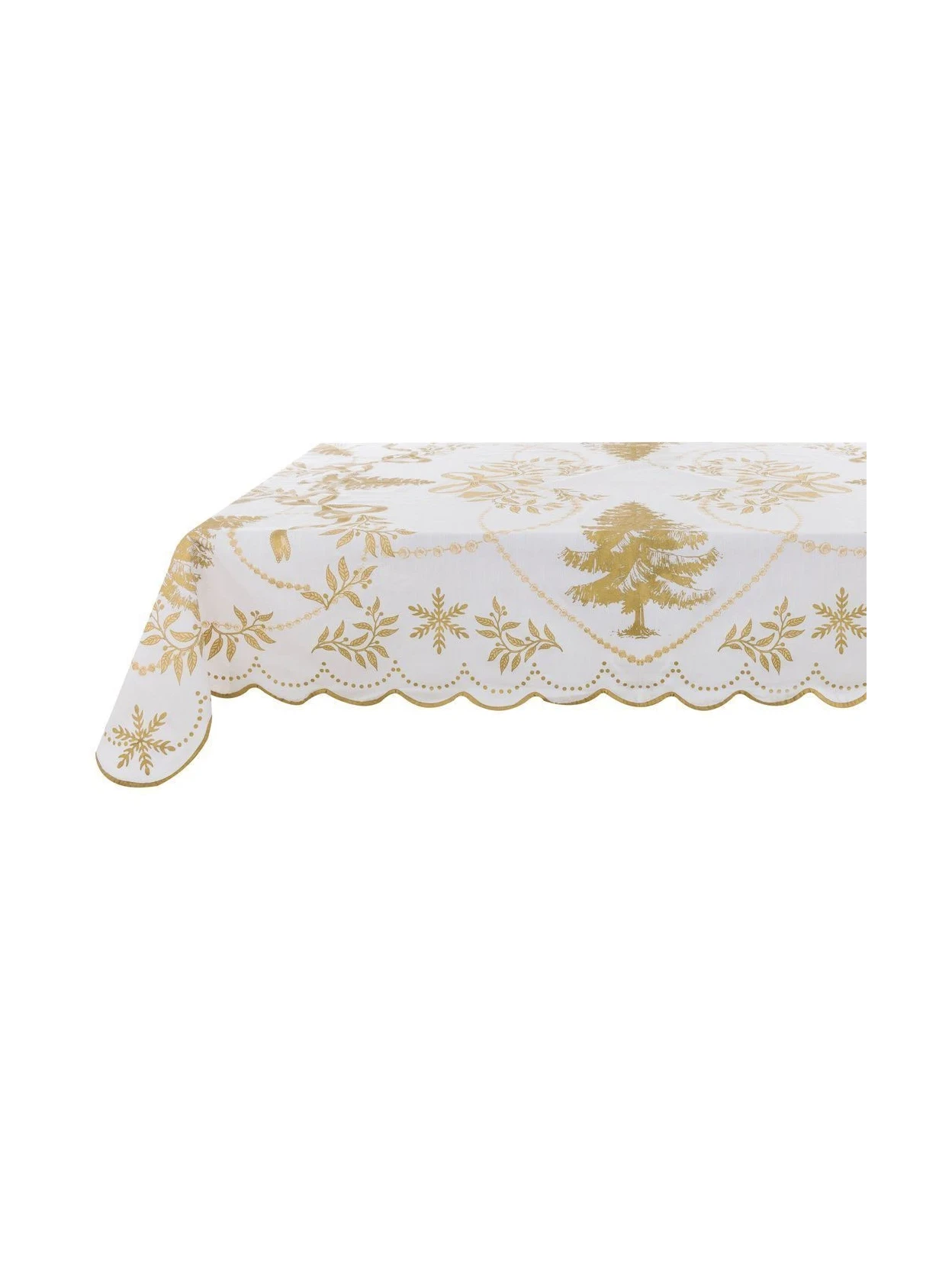 Rendi magica la tua tavola con la tovaglia bianca della collezione Shiny Christmas di Blanc Mariclò. Impreziosita da raffinate decorazioni dorate, dona un tocco luminoso e festoso a ogni pranzo o cena natalizia.